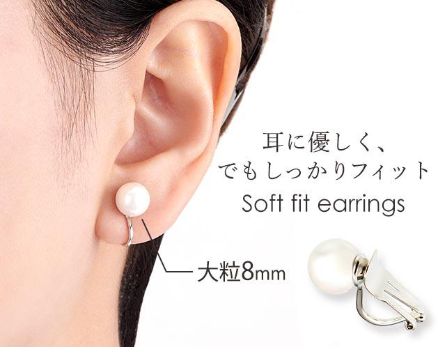 ★「清楚でシンプルながら存在感のある大粒貝パール」ソフトフィットイヤリング使用!*一つは欲しいシンプルな一粒貝パール、様々なシーンやファッションを選びません。年齢を問わず女性らしさを引き立てご愛用いただけるのが魅力です。*金具は長時間着けても痛くなりにくいのに落ちにくいそんな理想のソフトフィットイヤリングを使用しています。*つけ心地には個人差が有りますご了承ください。