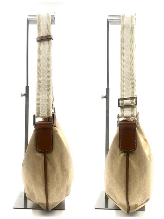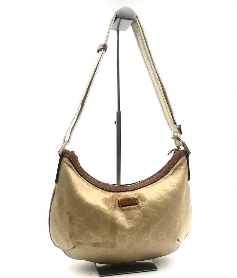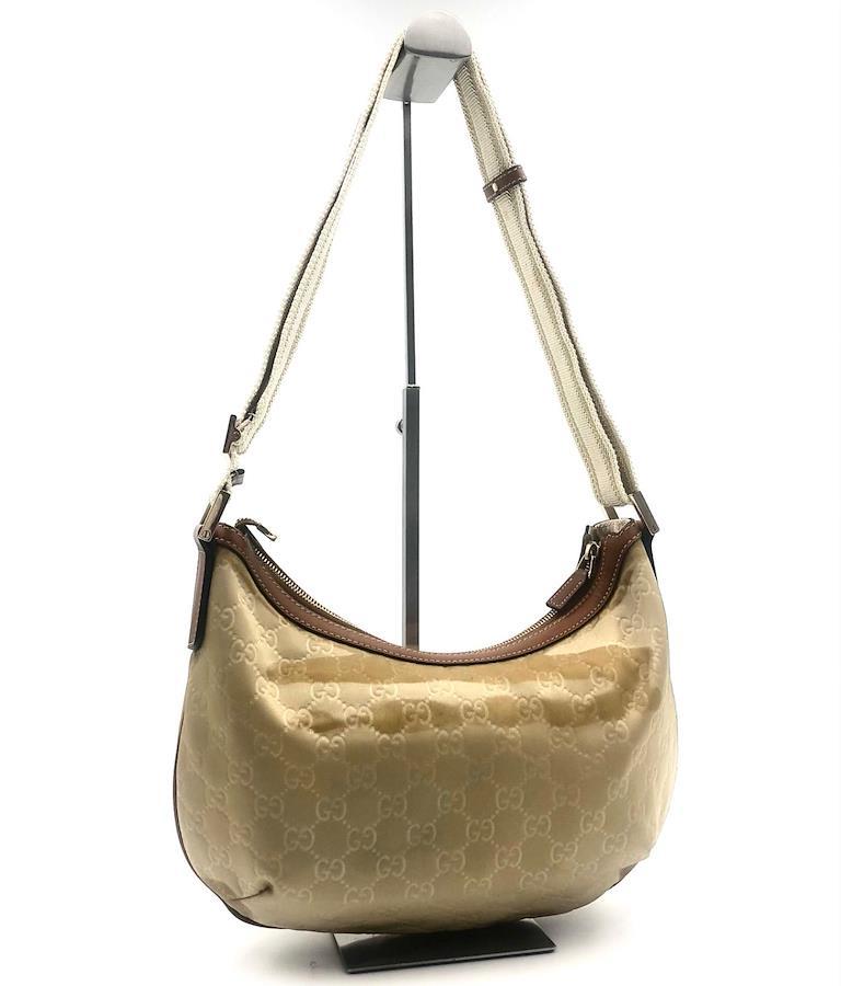 ■商品概要GUCCI グッチGGナイロンワンショルダーバッグ三日月型斜めがけ クロスボディナイロンキャンバス×レザーベージュ×ブラウンイタリア製刻印あり 181092・493075レディースラグジュアリー 高級 ハイブランド
