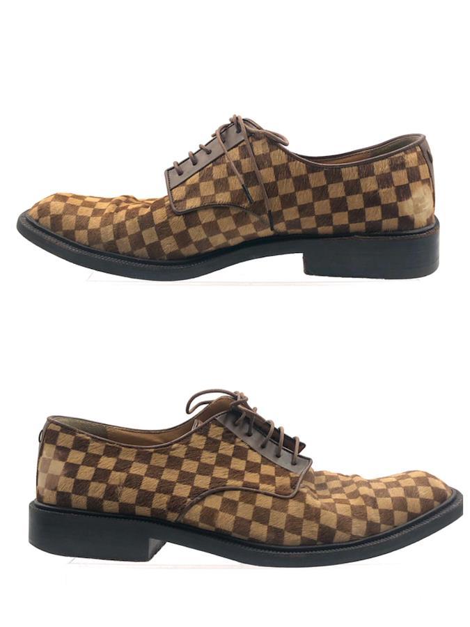 柔らかなハラコ素材を使用した、ダミエ ソバージュラインのドレスシューズです。メンズのプレーントゥはあまり市場では見かけないため、希少です。