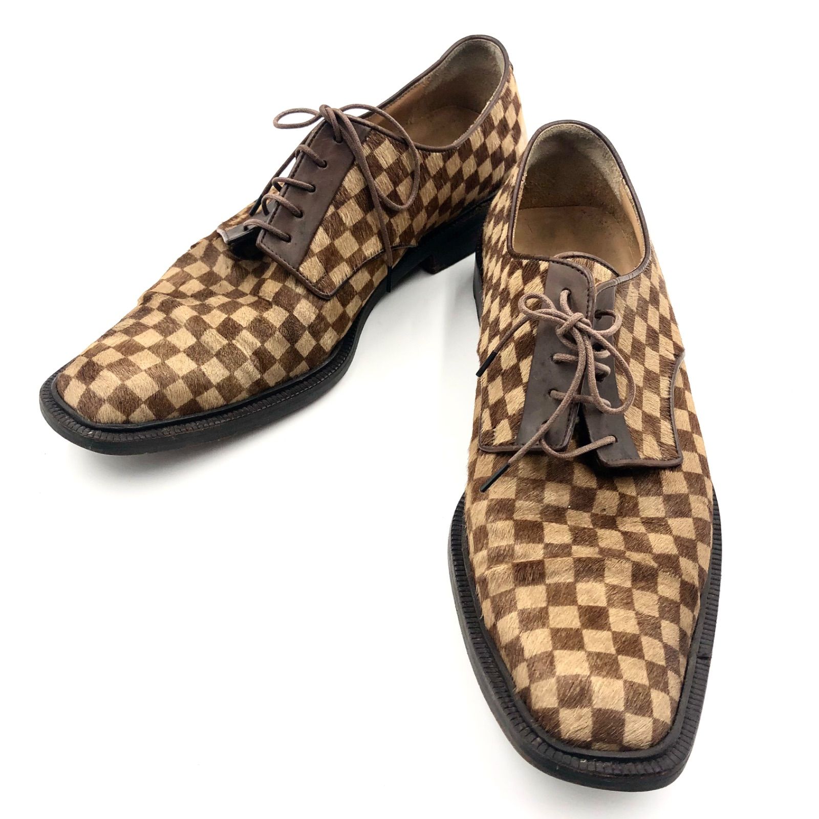 ■商品概要LOUIS VUITTON ルイヴィトンダミエ ソバージュ 総柄ドレスシューズ 革靴外羽根プレーントゥハラコレザー 本革イタリア製size6(サイズ25.5cm程度)メンズ高級 ハイブランド 派手パーティー、ラグジュアリー、結婚式、お祝い、イベント
