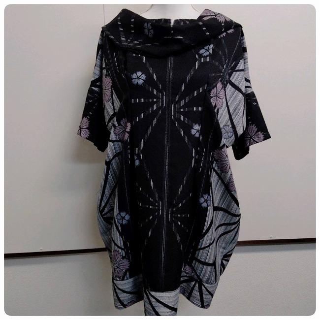 和柄のチュニックキーネックでスマートに着られます。ストール付きです。ストールの有無で印象が変わりますね。すこしよそ行きなおでかけや 急いでいるときなどにおすすめ。スポットかぶって体系がカバーできてしまうのも魅力の縦ライン。