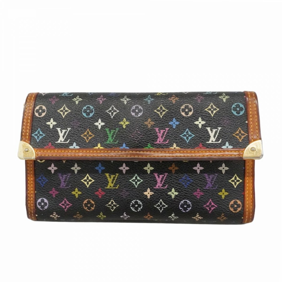 ★SALE【6da0541-k】ルイヴィトン 三つ折り長財布 モノグラム・マルチカラー ポルトトレゾールインターナショナル M92658 ノワール【中古】レディース