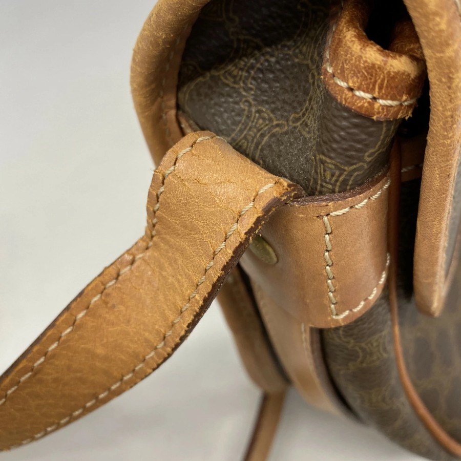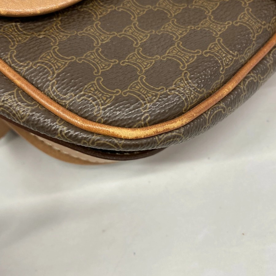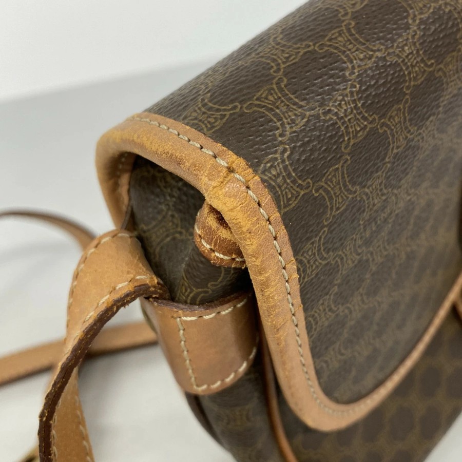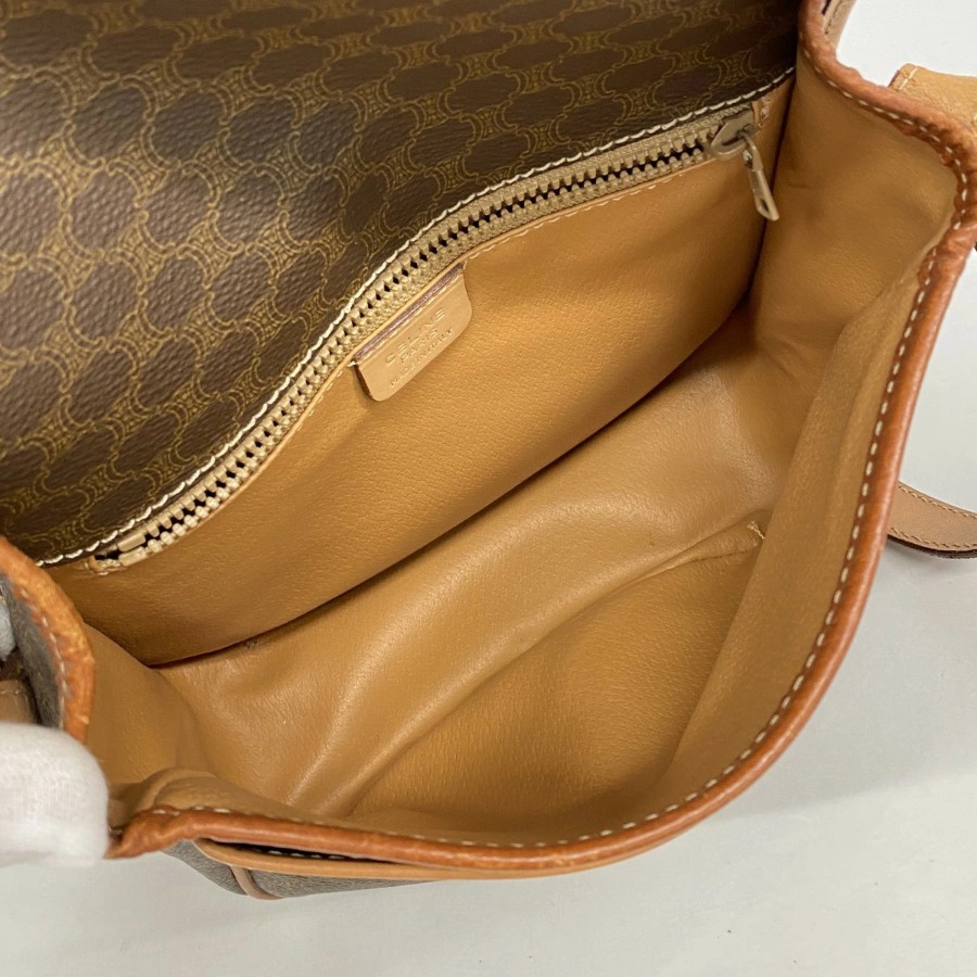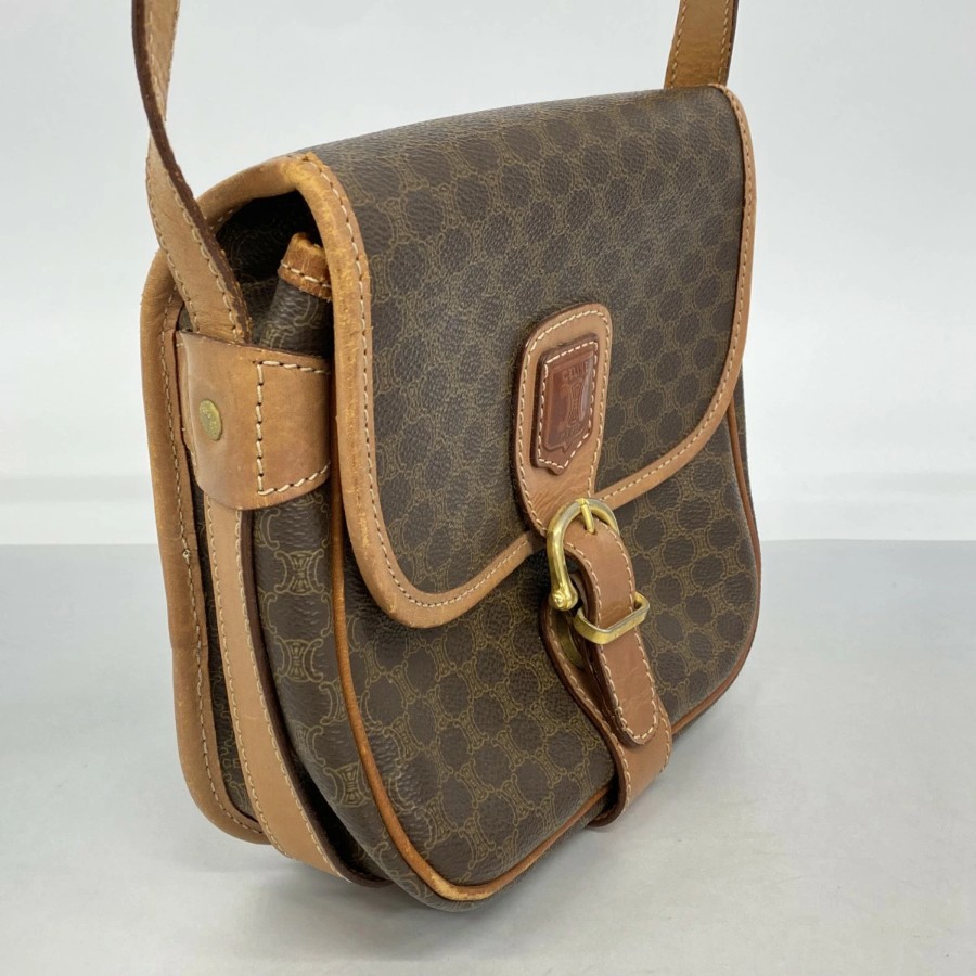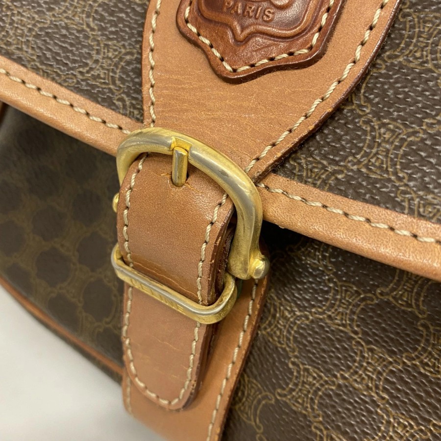 【6dd4390-k】セリーヌ ショルダーバッグ マカダム ブラウン ゴールド金具【中古】レディース