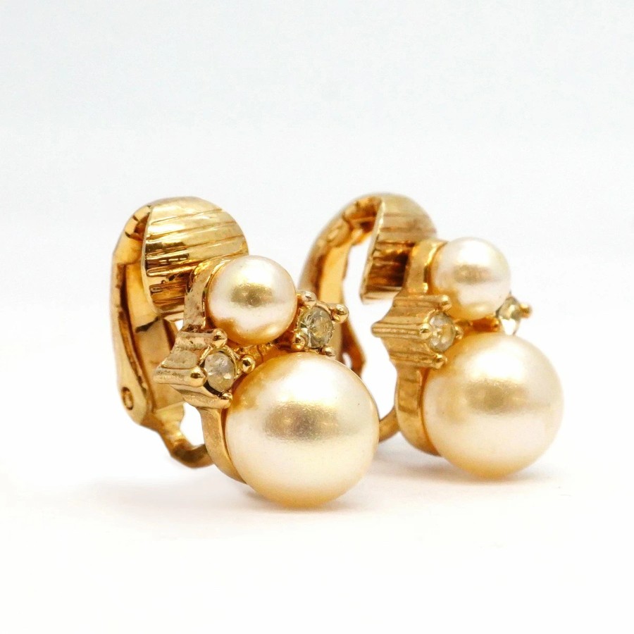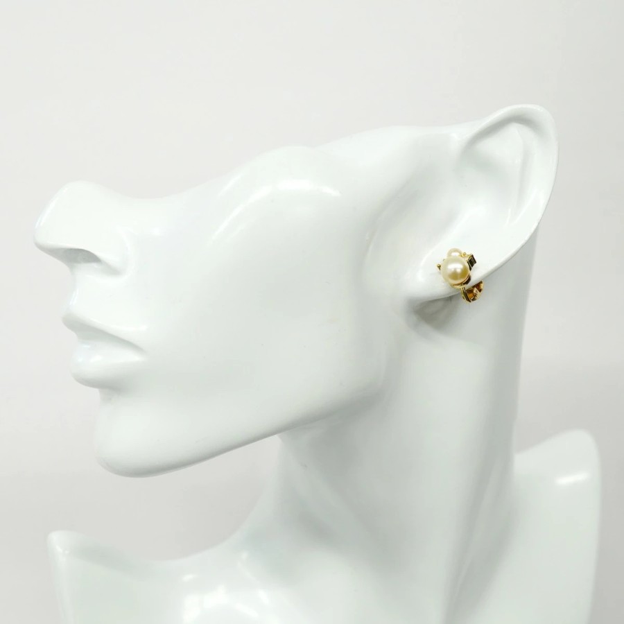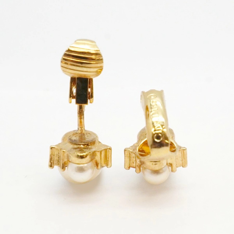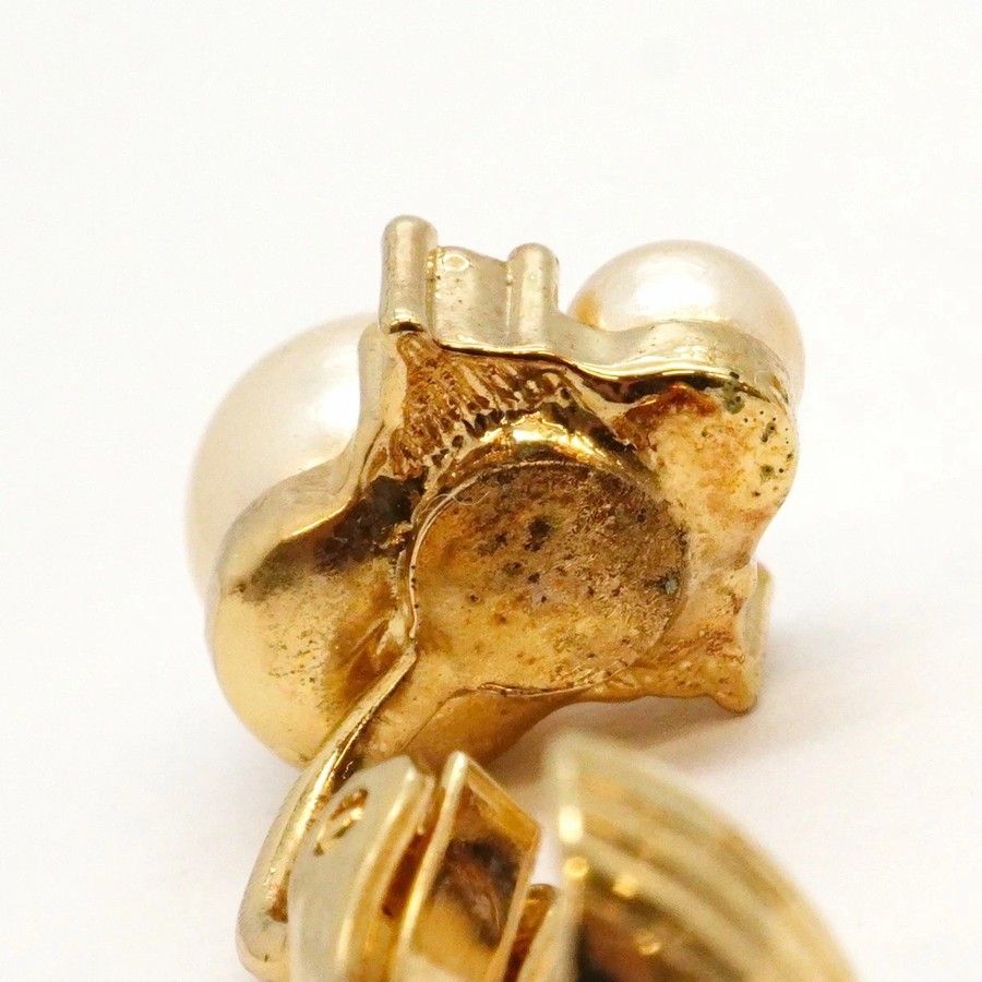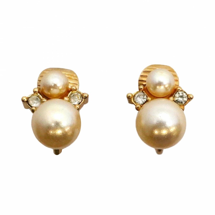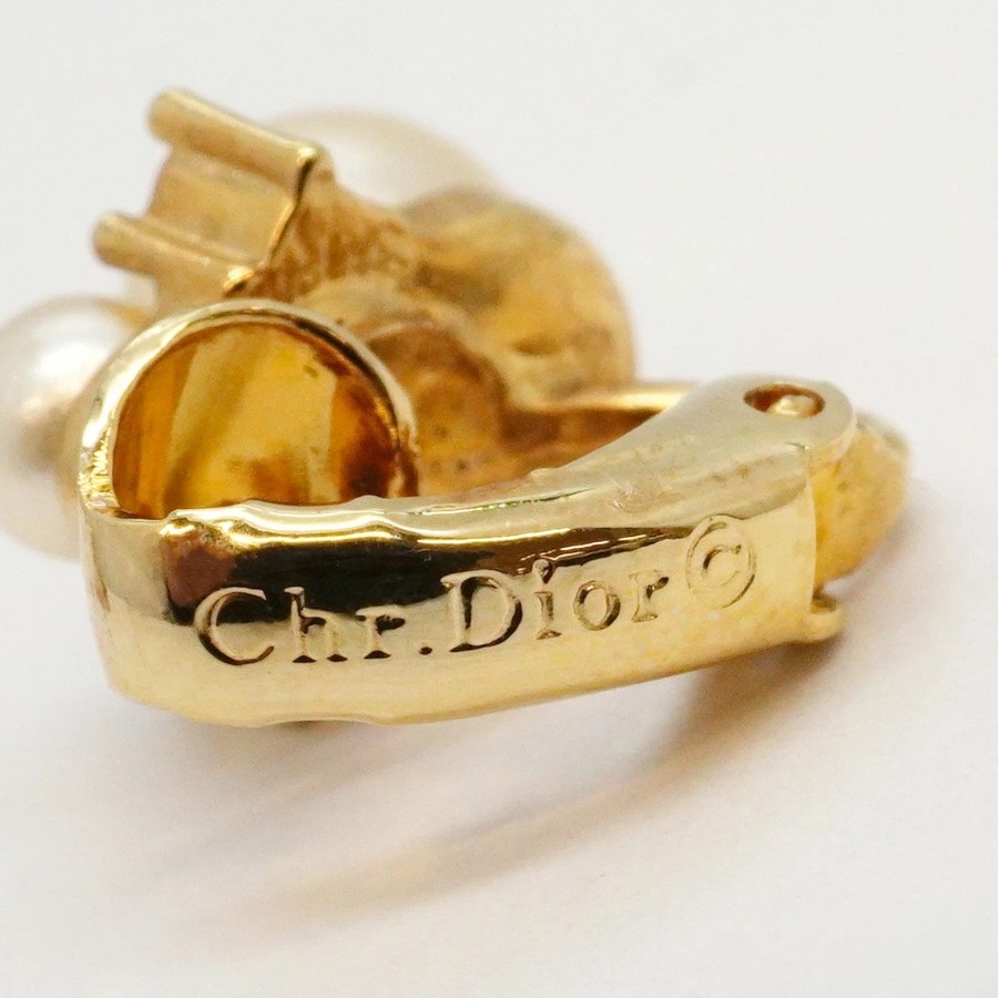 ★SALE【6jcb0773-k】クリスチャンディオール イヤリング GPメッキ フェイクパール ラインストーン ゴールド【中古】レディース