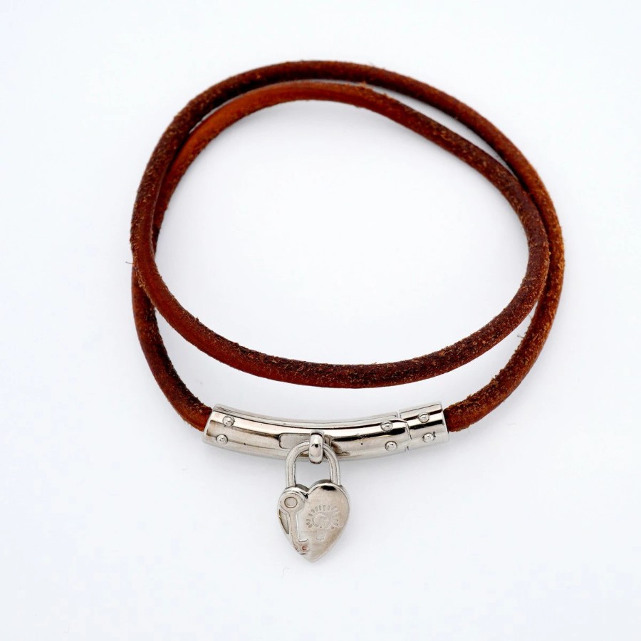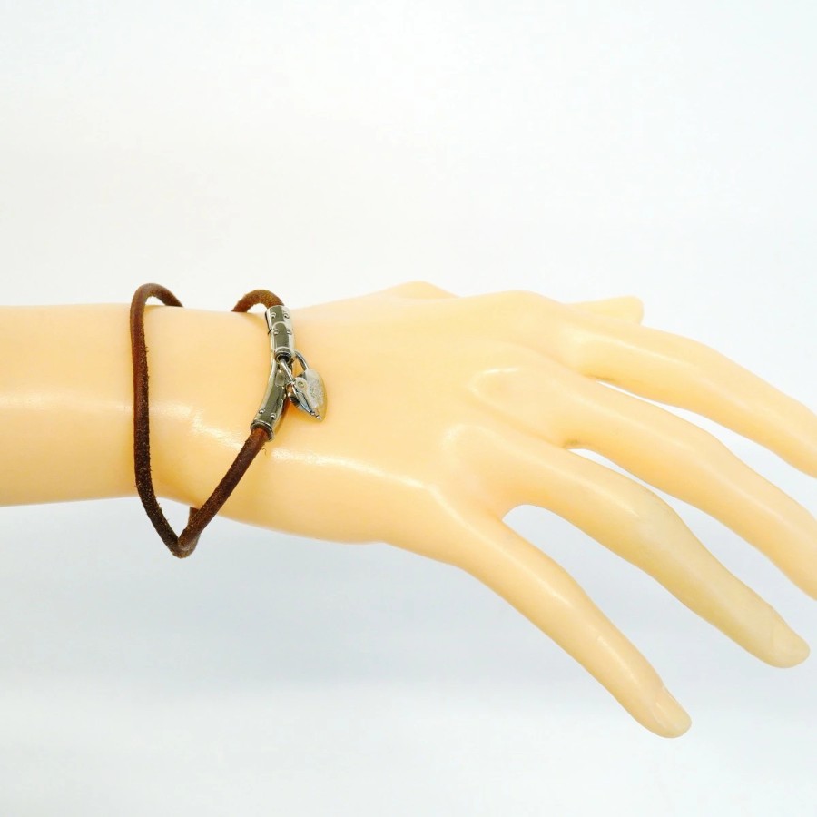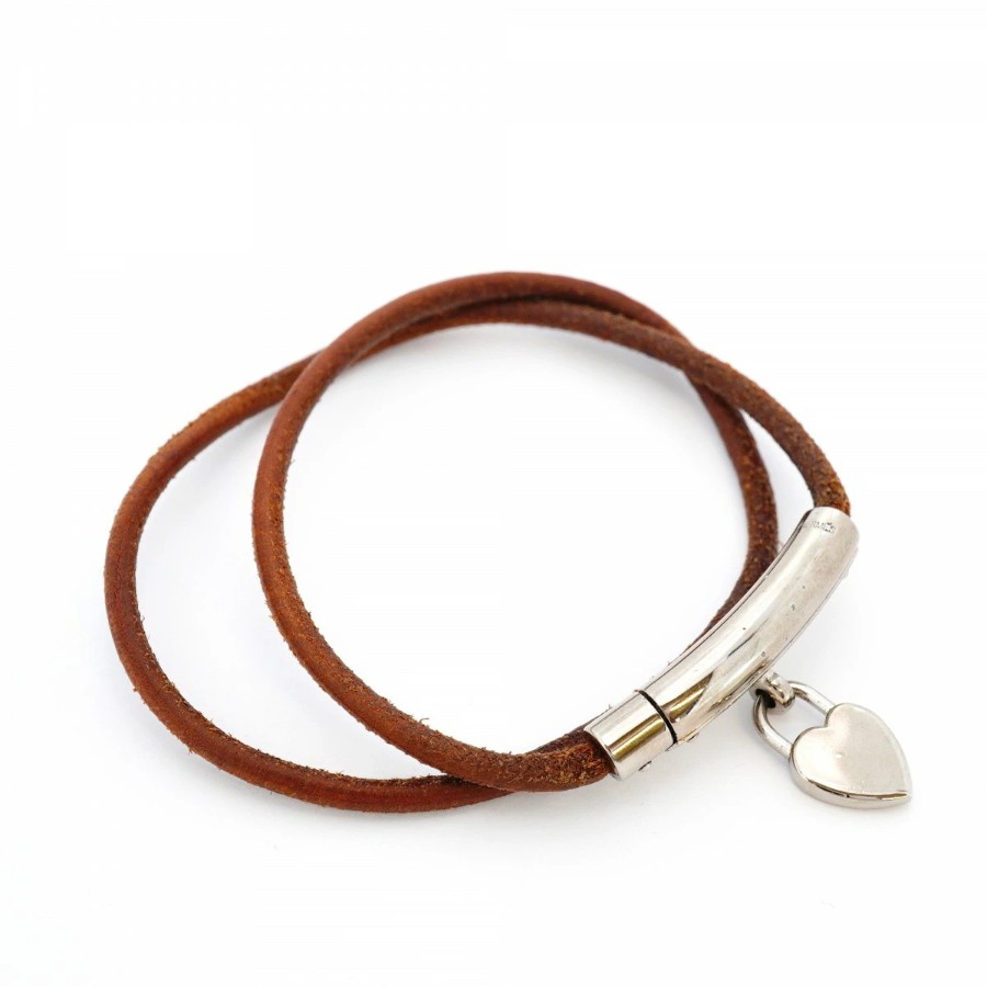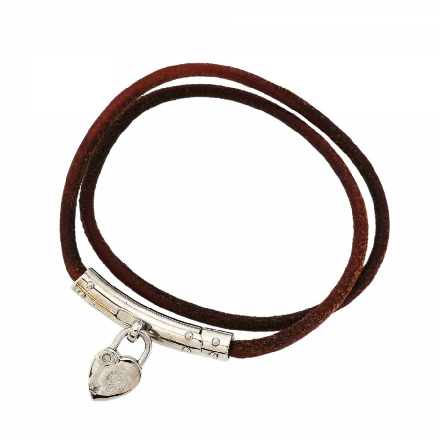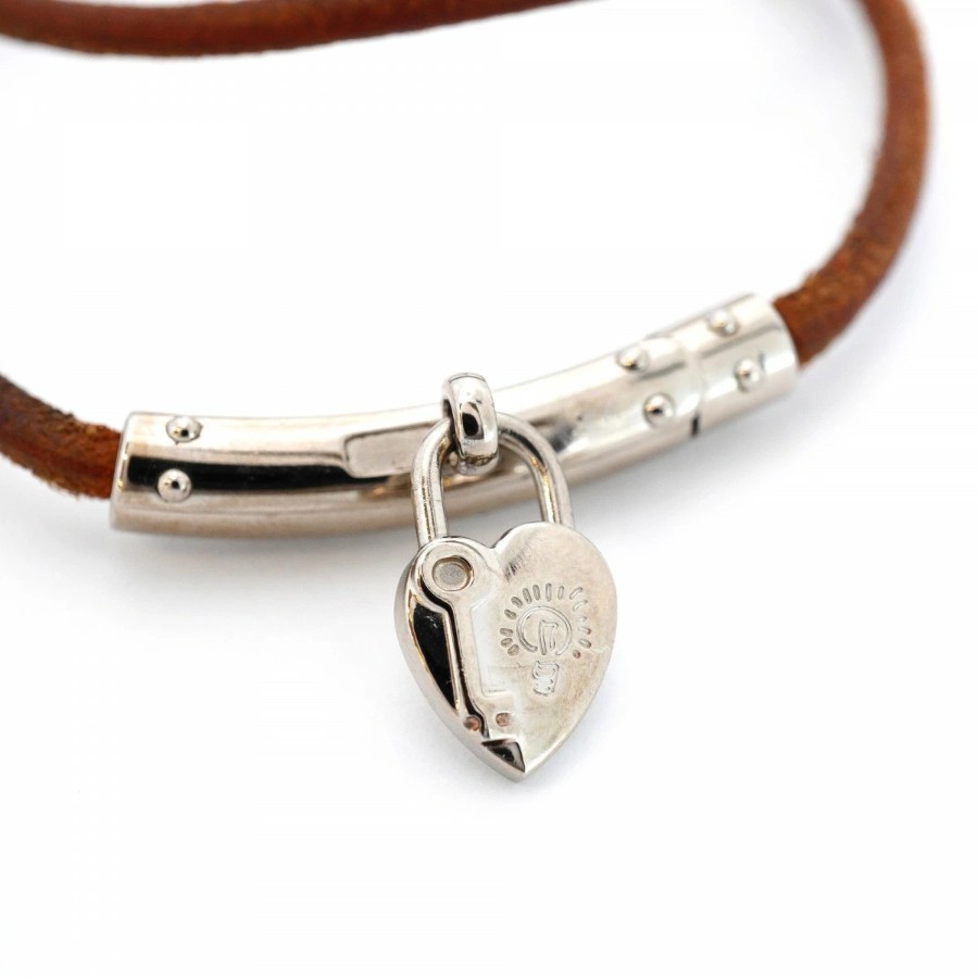 ★SALE【6jcb0804】エルメス ブレスレット チョーカー ファンタジーハート メタル レザー シルバー ブラウン【中古】レディース