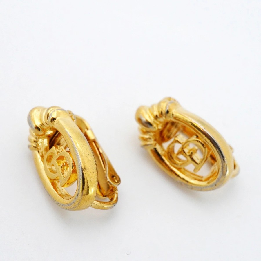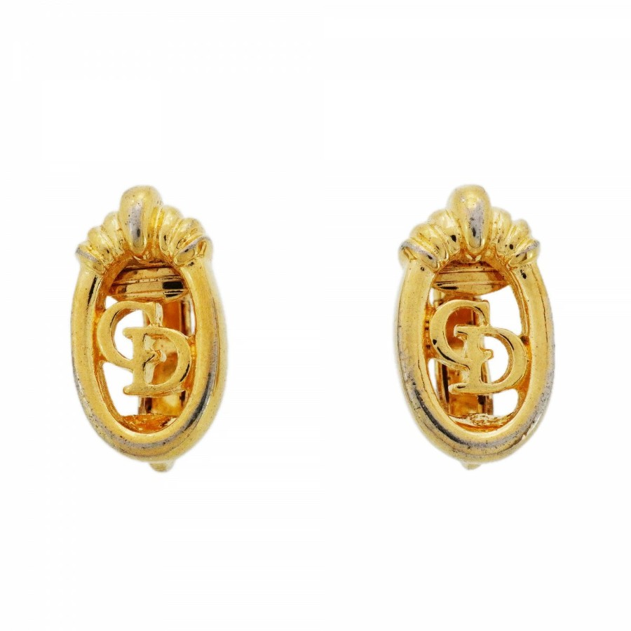 ★SALE【6jcb0829-k】クリスチャンディオール イヤリング CDロゴ GPメッキ ゴールド【中古】レディース
