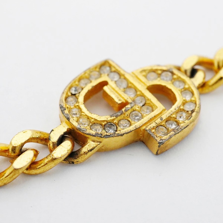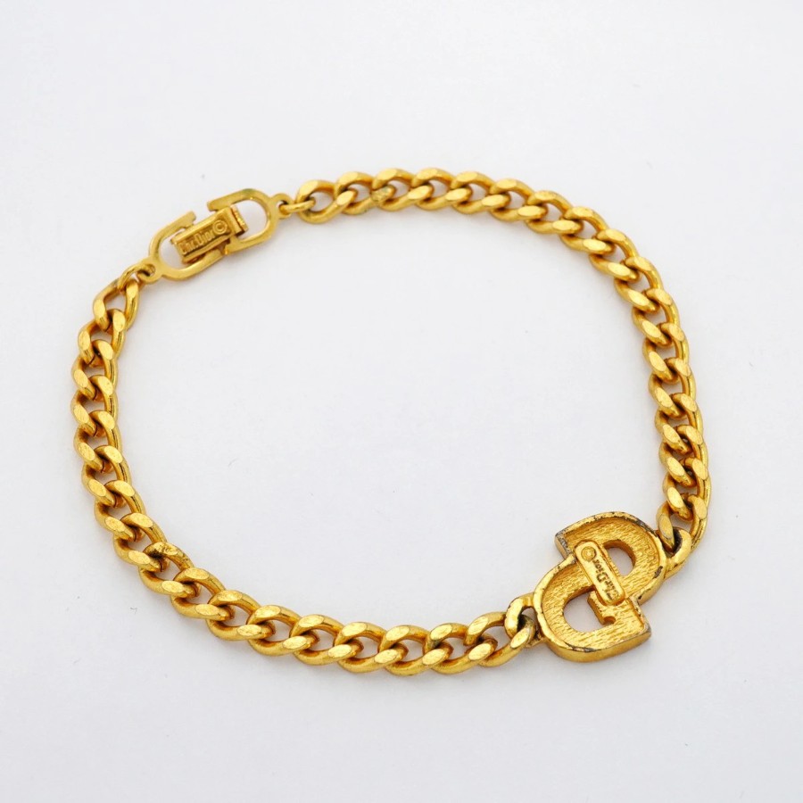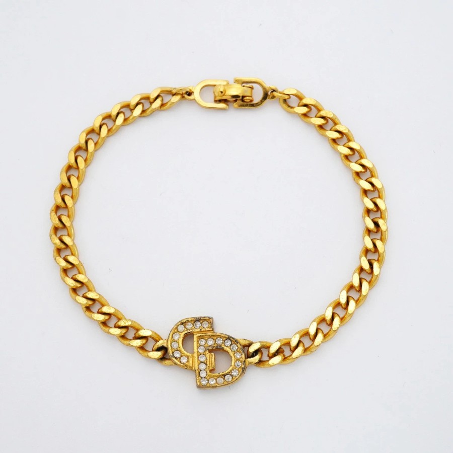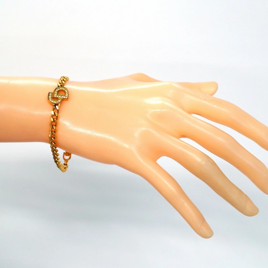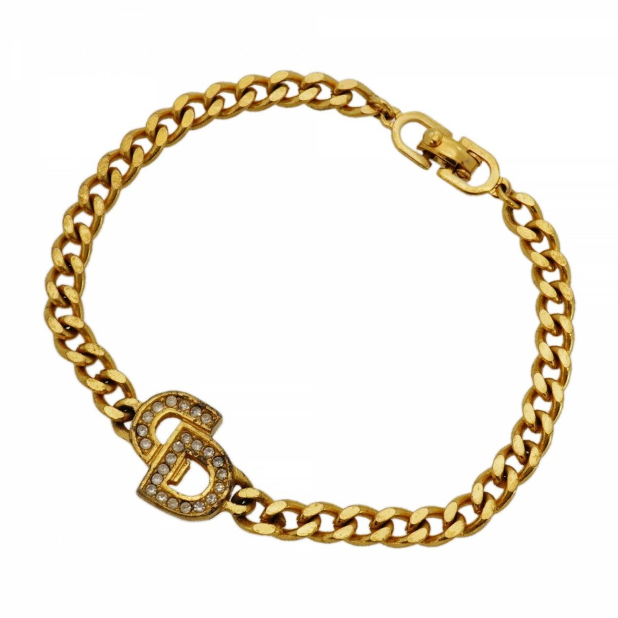 【6jcb1002-k】クリスチャンディオール ブレスレット CDロゴ GPメッキ ラインストーン ゴールド【中古】レディース