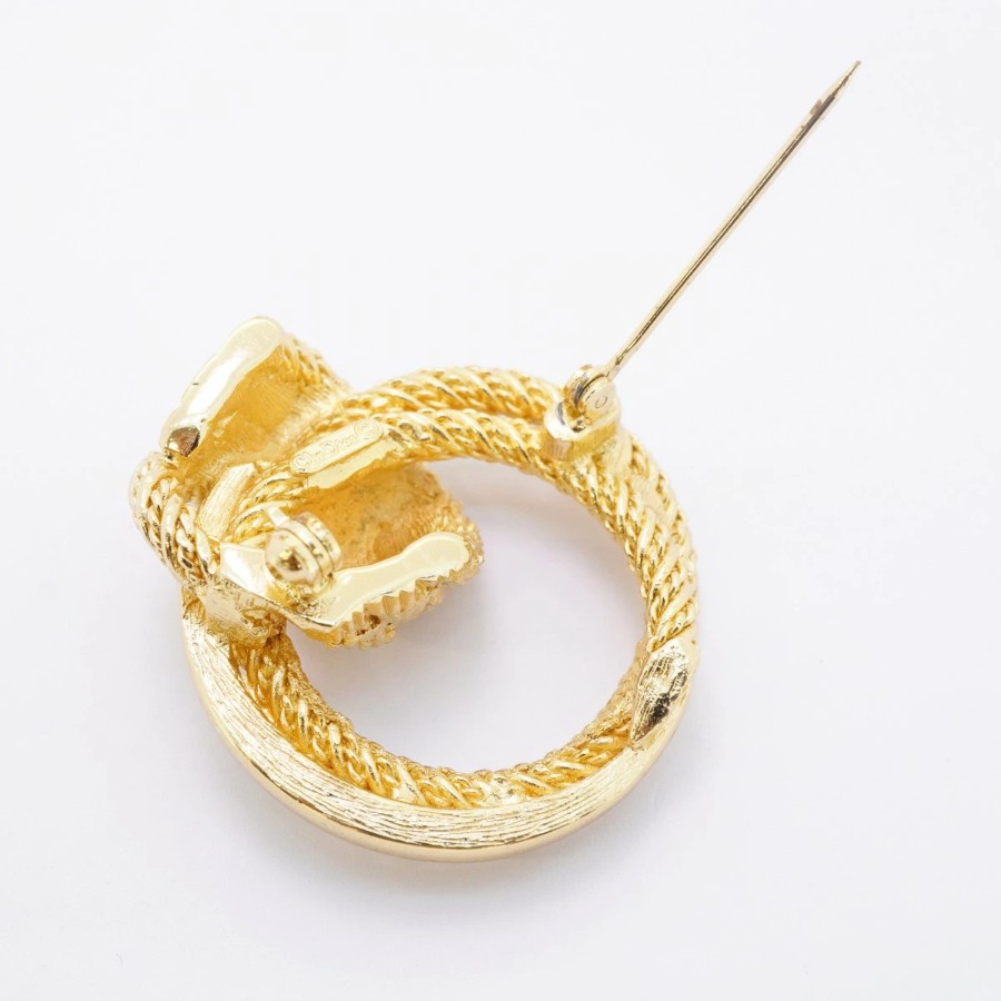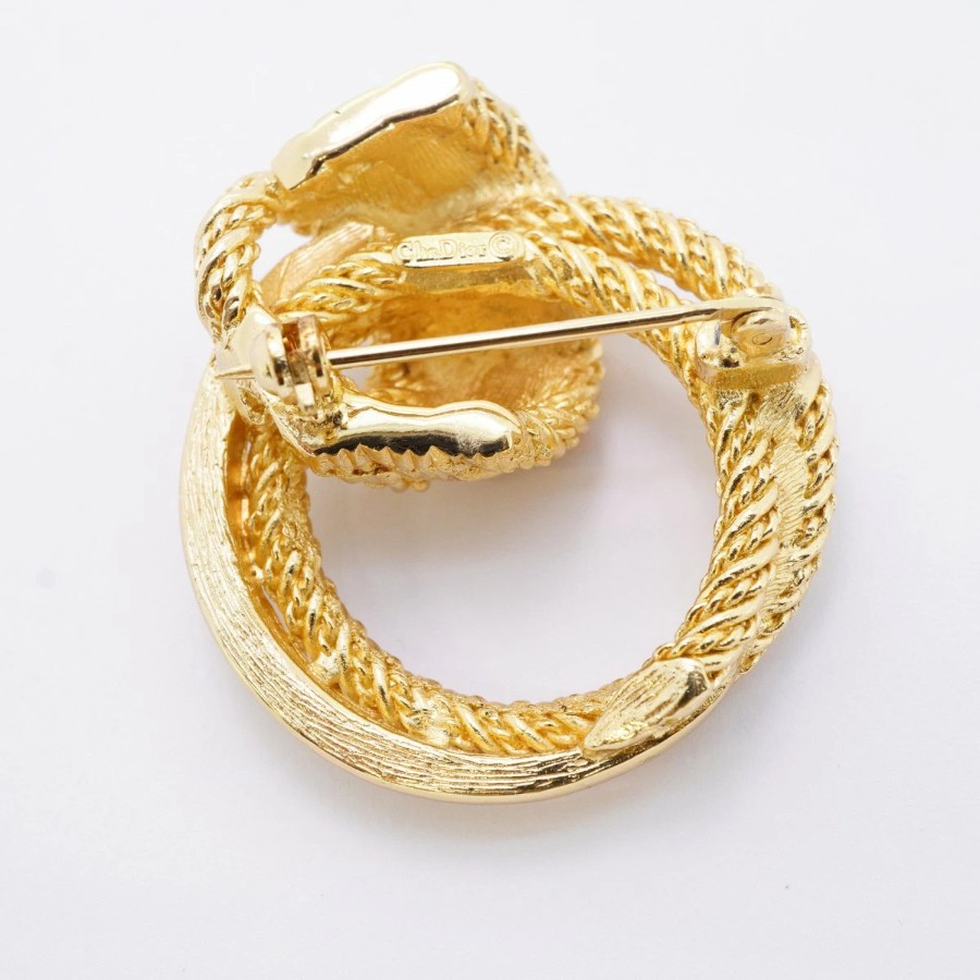 【6jcb1014-k】クリスチャンディオール ブローチ ロープ GPメッキ ラインストーン ゴールド【中古】レディース