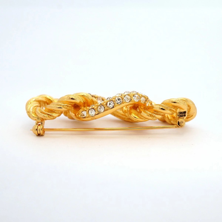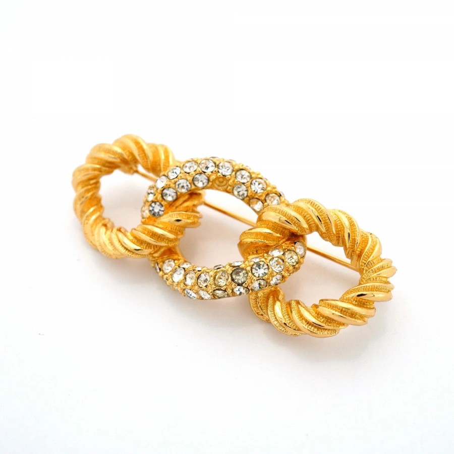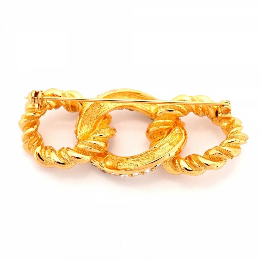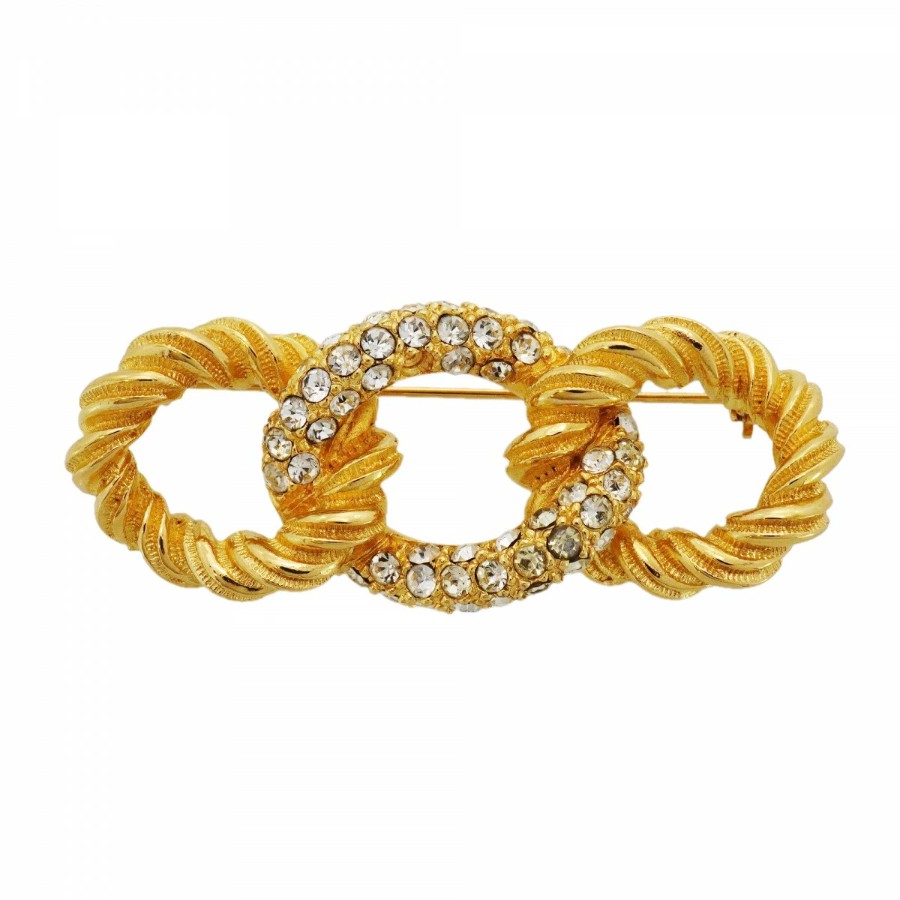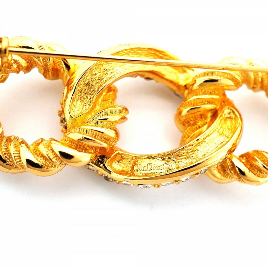 【6jdb0147-k】クリスチャンディオール ブローチ ロープ GPメッキ ラインストーン ゴールド【中古】レディース