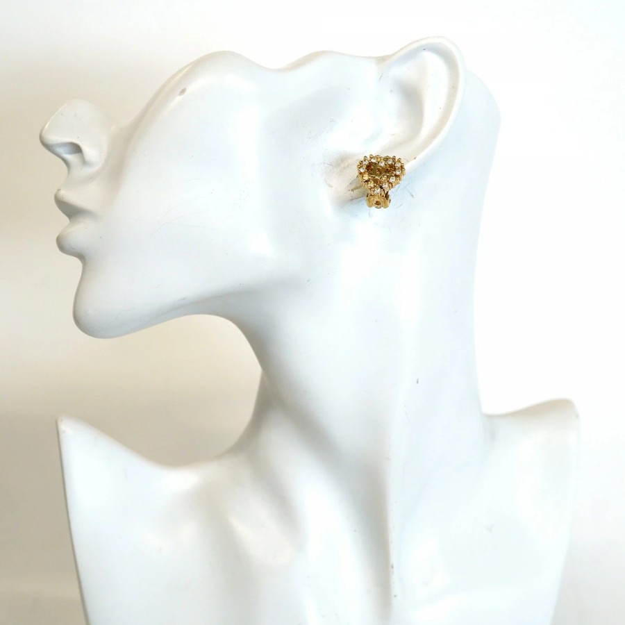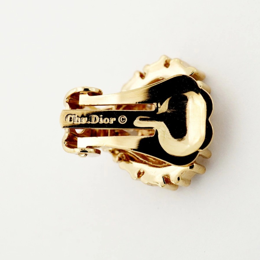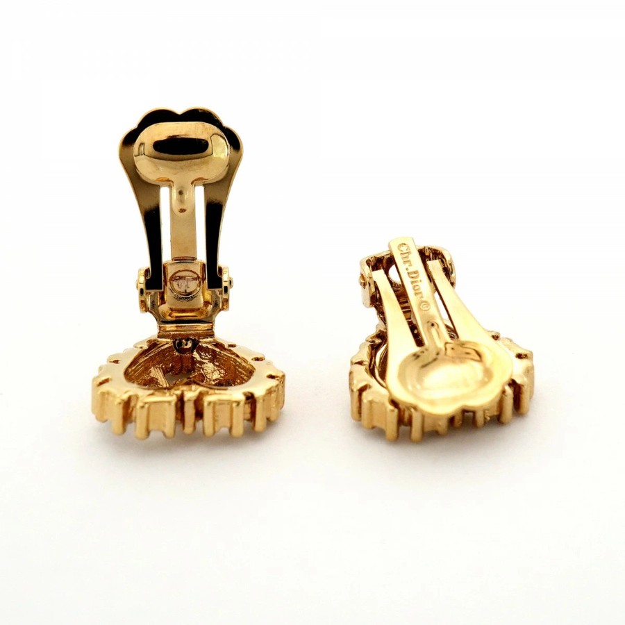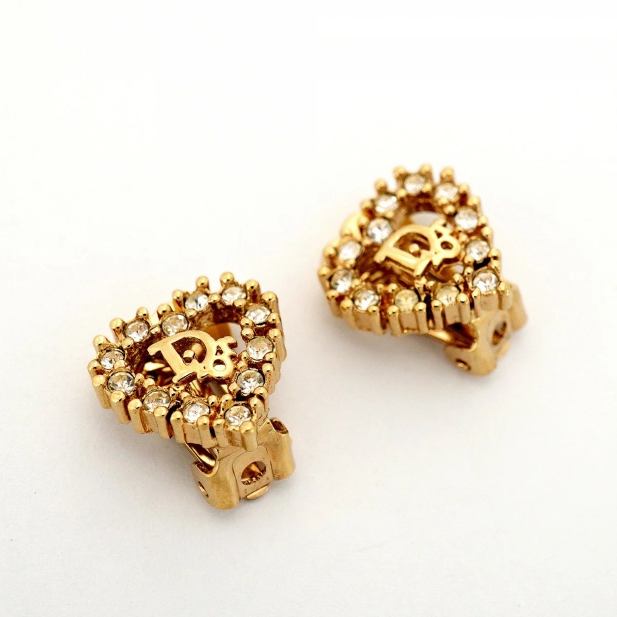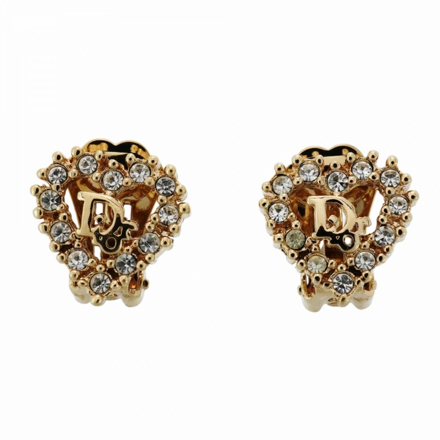 【6jdb0257】クリスチャンディオール イヤリング ディオールロゴ ハートモチーフ GPメッキ ラインストーン ゴールド【中古】レディース