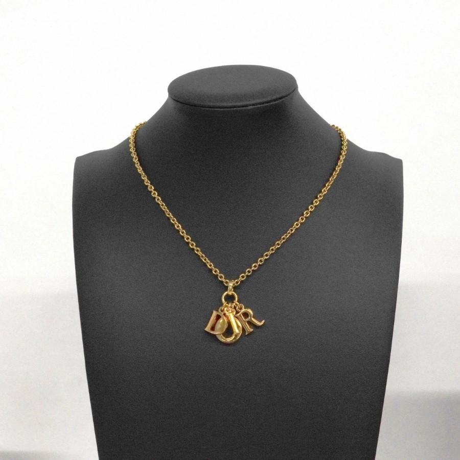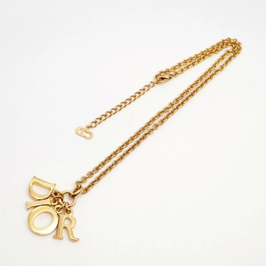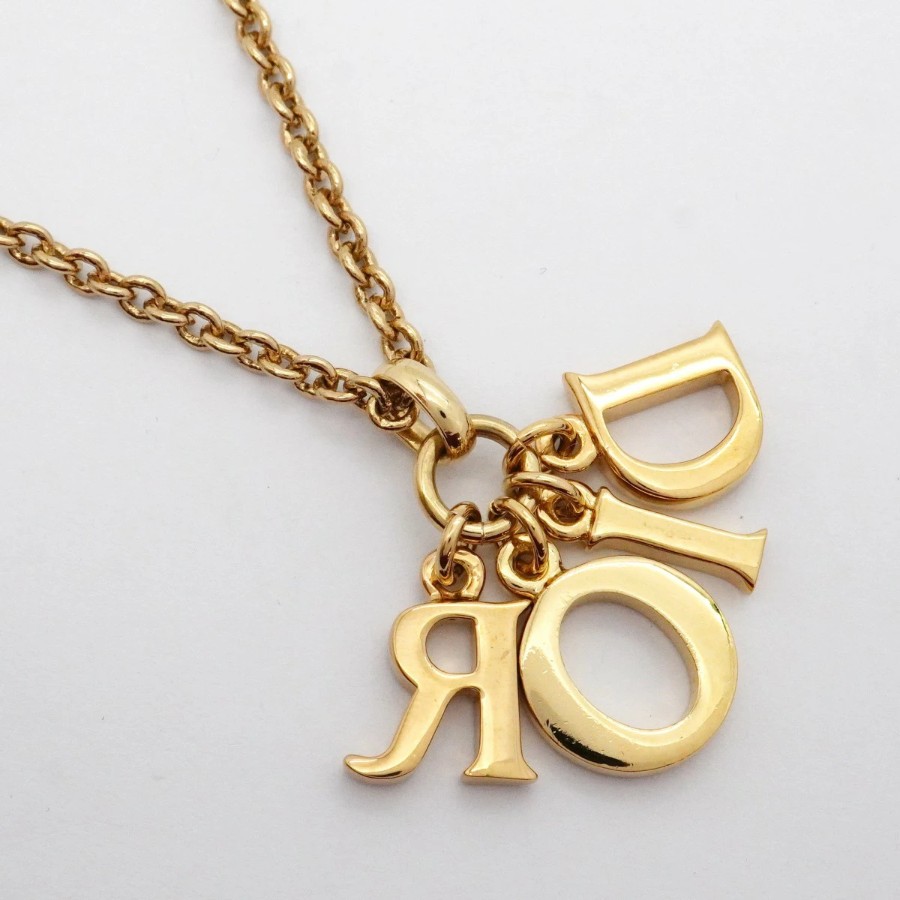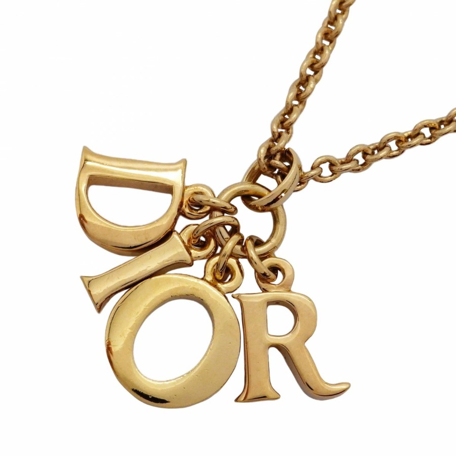 【6jdb0317-k】クリスチャンディオール ネックレス ディオールロゴ GPメッキ ゴールド【中古】レディース