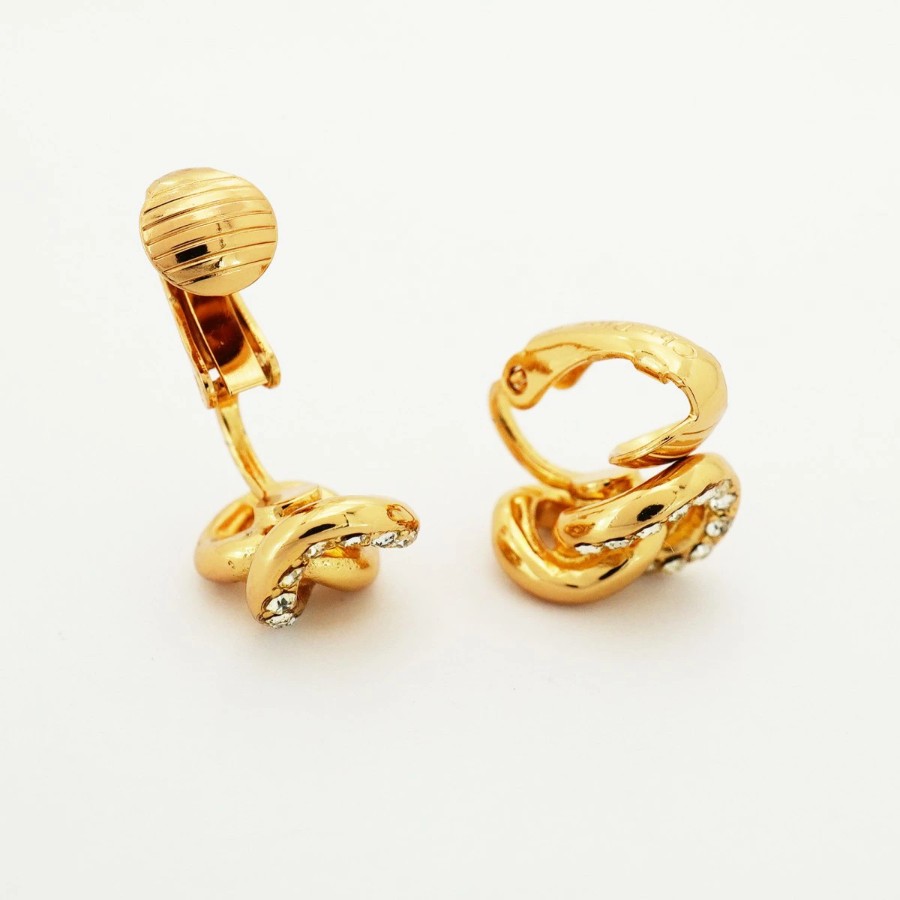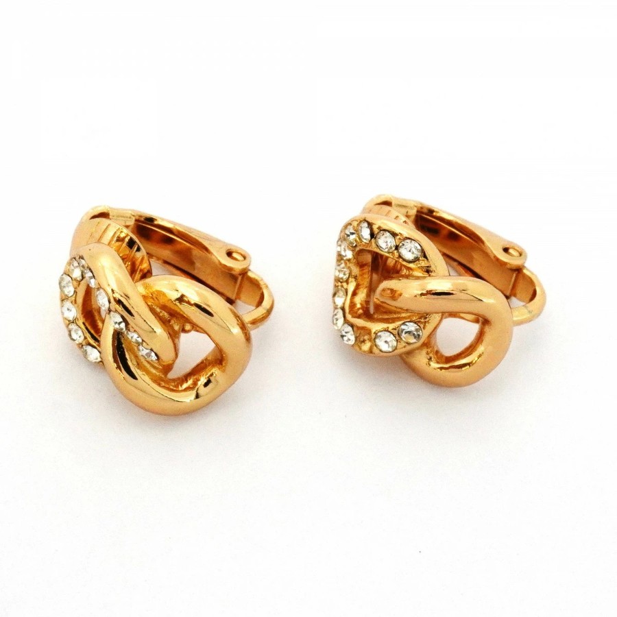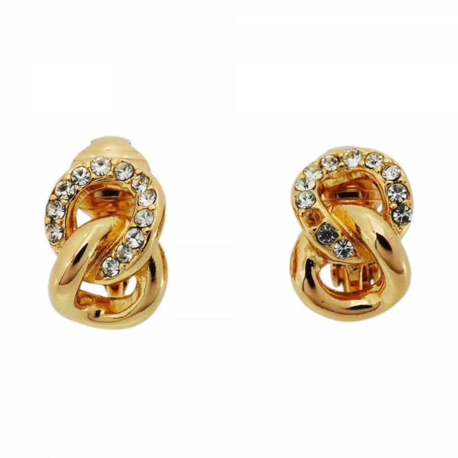 【6jdb0324-k】クリスチャンディオール イヤリング GPメッキ ラインストーン ゴールド【中古】レディース