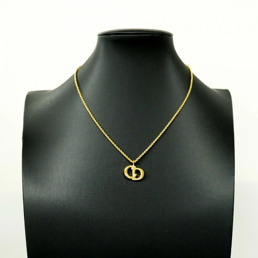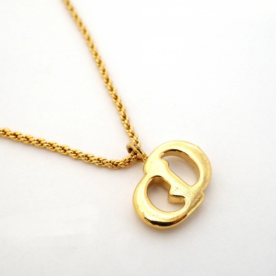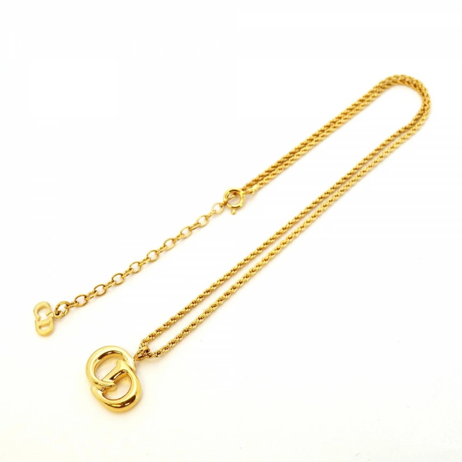 【6jdb0403】クリスチャンディオール ネックレス CDロゴ GPメッキ ゴールド【中古】レディース