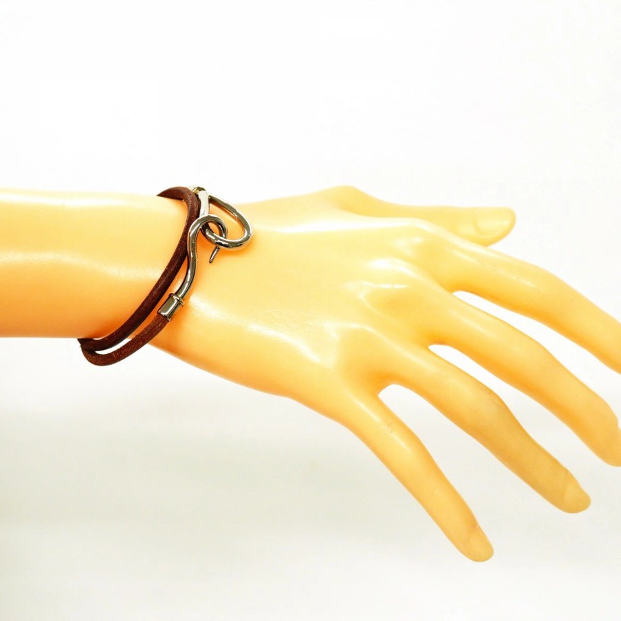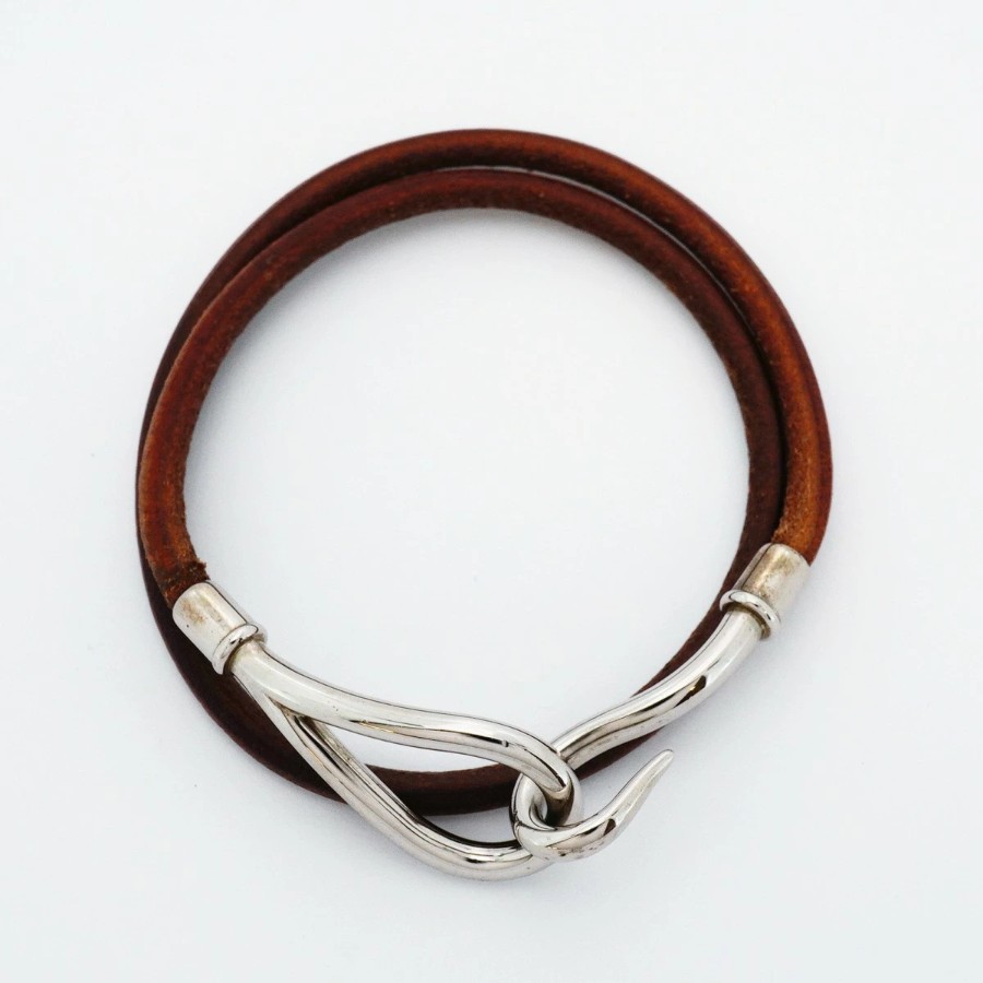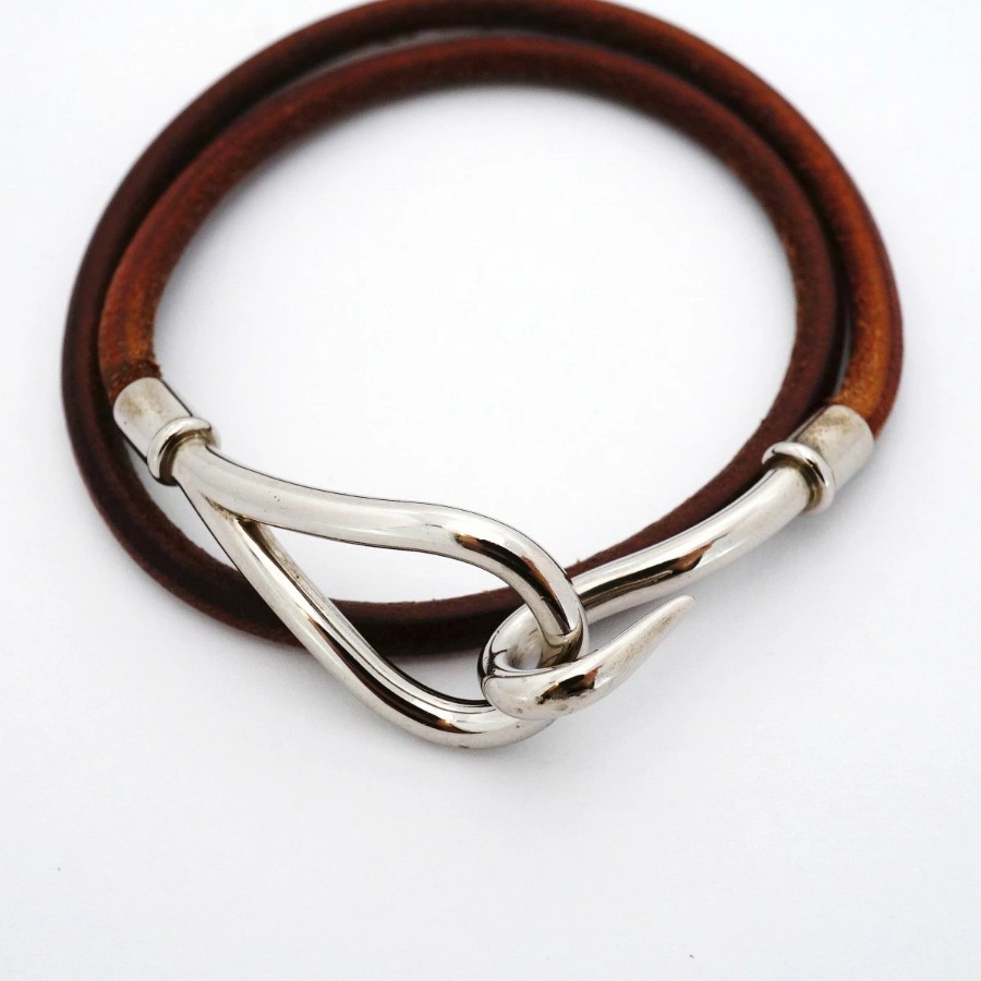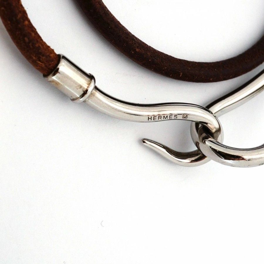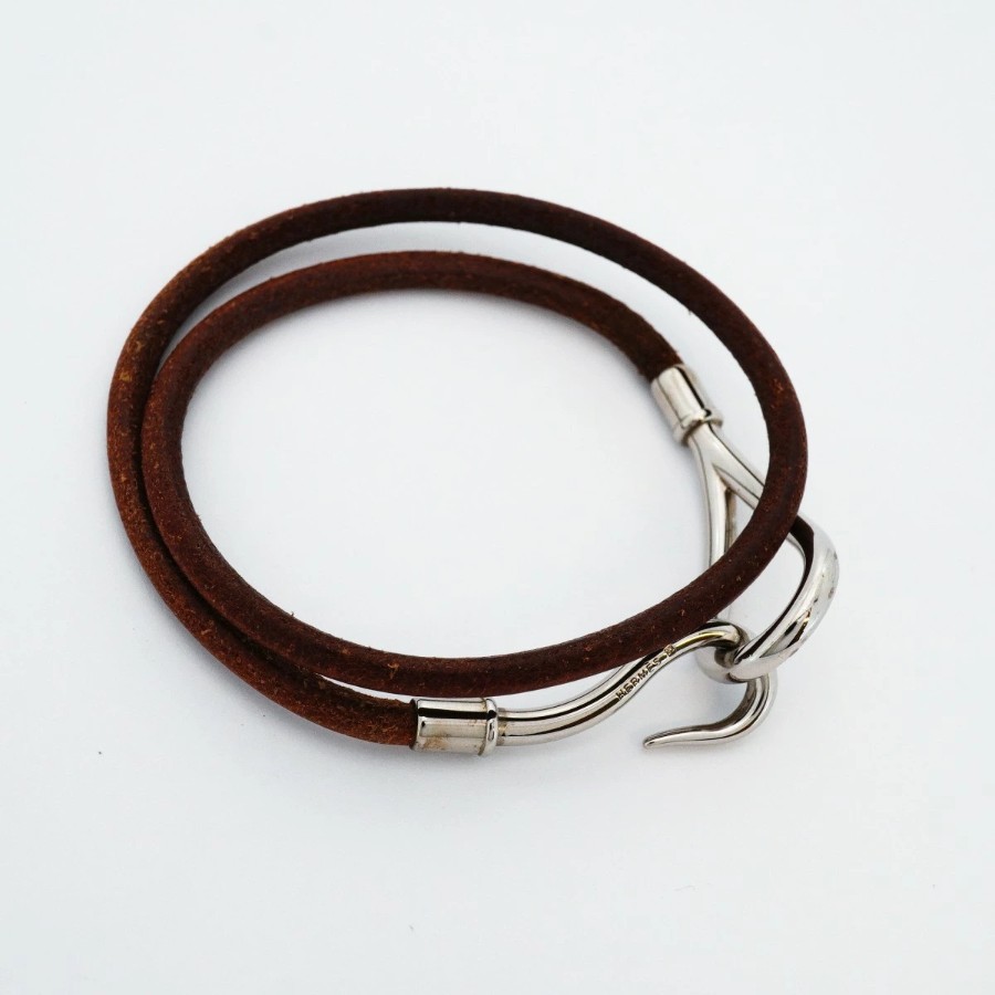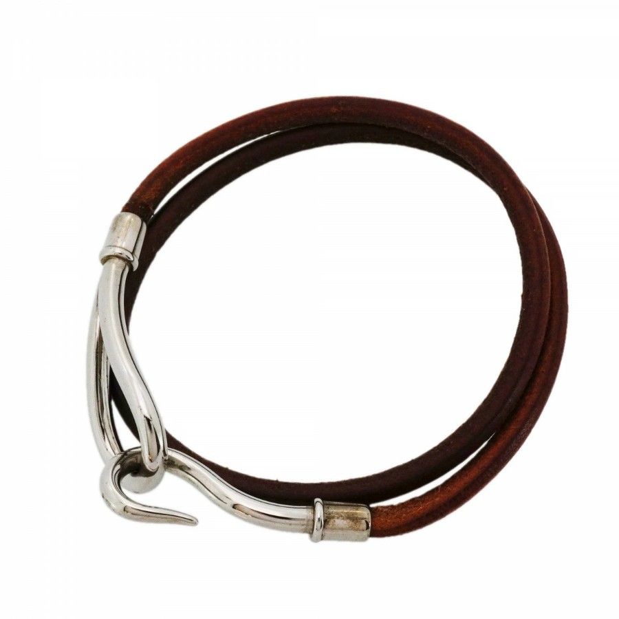 【6jdb0407】エルメス ブレスレット ジャンボフック メタル レザー シルバー ブラウン【中古】レディース