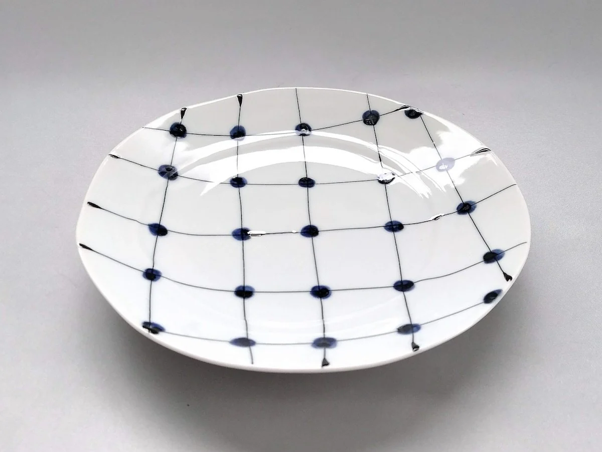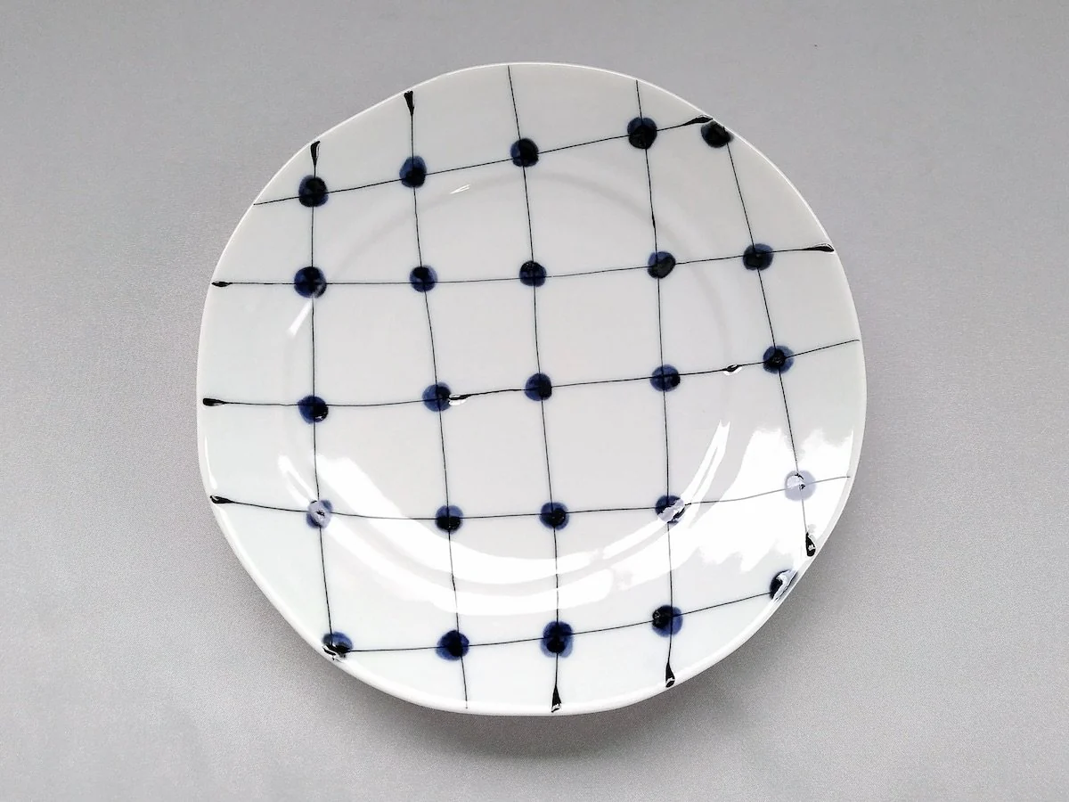 【One-of-a-kind Japanese Artisanal Handcrafted Piece】 Dotted Grid Pattern 6.5-Sun Plate - Crafted By Fukuho Kiln