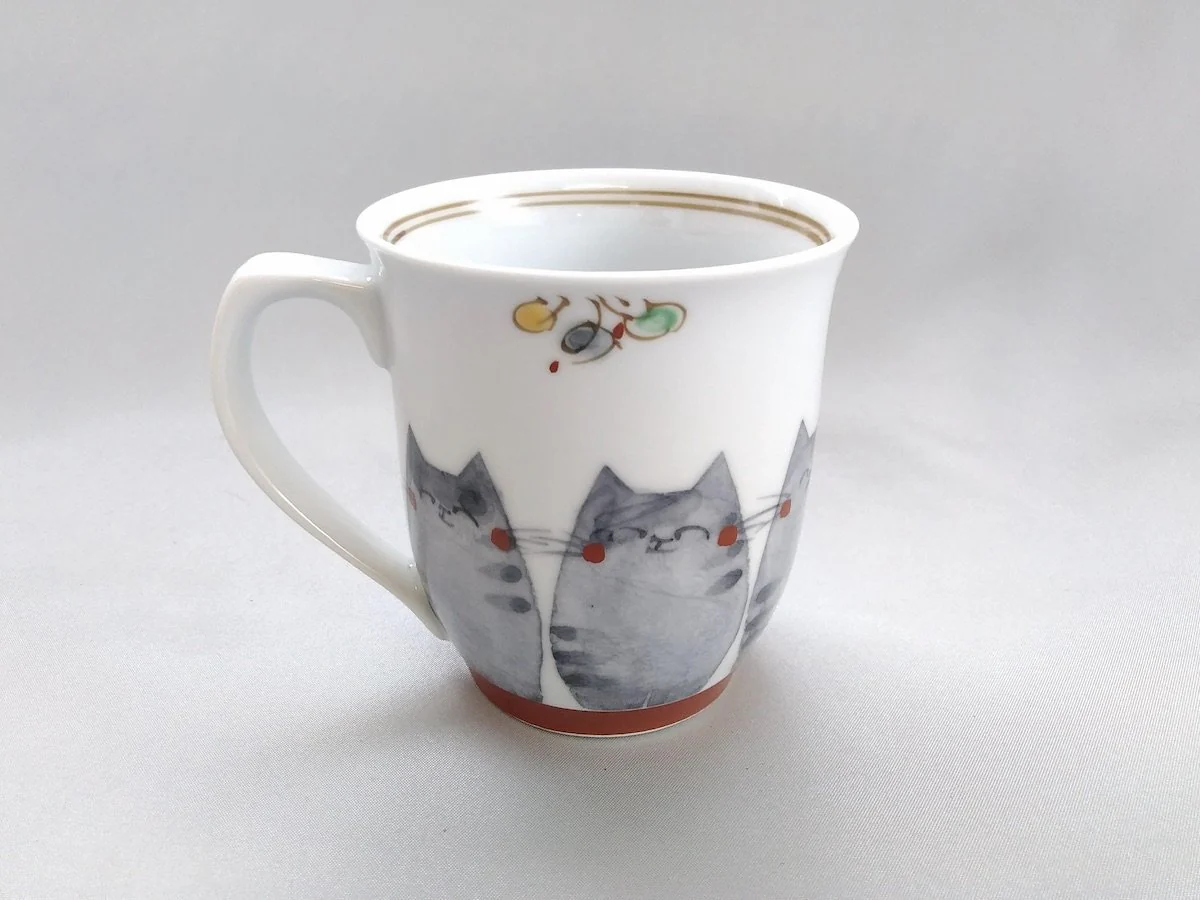 【One-of-a-kind Japanese Artisanal Handcrafted Piece】 Japanese paper Underglazed cat Mug Red - Crafted By Soramoe Pottery