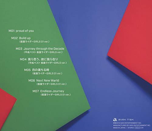 ■収録内容M1:proud of you / PANDORA feat. KRGS※バンダイナムコPS4「クライマックスファイターズ」テーマソング/TVCM曲M2:Build Up /仮面ライダーGIRLS 01 Ver※TV「仮面ライダービルド」挿入歌M3:Journey through the Decade/平成ベスト仮面ライダーGIRLS ver.※オリジナル:GACKT 「仮面ライダーディケイド」TV主題歌、M4:我ら思う、故に我らあり/平成ベスト仮面ライダーGIRLS ver.※オリジナル:氣志團 「仮面ライダーゴースト」TV主題歌M5:月の満ちる時 / ツクヨミ(CV:大幡しえり) with 仮面ライダーGIRLS 01 Ver.※TV「仮面ライダージオウ」挿入歌M6:Next New Wφrld/仮面ライダーGIRLS 01 Ver.※オリジナル:RIDER CHIPS TV 「仮面ライダージオウ」挿入歌M7:Endless Journey /仮面ライダーGIRLS 01 Ver.※スマートフォン向けアプリゲーム「仮面ライダー シティウォーズ」タイアップ曲 )