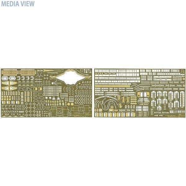 フジミ 1/200 戦艦大和 艦橋 純正エッチングパーツ 集める装備品シリーズ No.202 ■集める装備品シリーズ「1/200 戦艦大和 艦橋」を「リアルに」アップグレードさせる、メーカー純正のエッチング製パーツ集です。■エッチングパーツは昭和20年の最終時形態をベースにしており、適度な強度と曲げやすさを両立する0.15mm厚です。グレードアップの基本となるラッタル、手摺を収録するパーツ集1枚、固定形状のパーツ集1枚の計2枚組。サイズは2枚とも180×97mmの大判で、合計185種類のパーツが収録されています。■艦橋最上部は21号電探をまるごとエッチングパーツに置き換え可能に。■方位探知アンテナ、測距儀前方足場、後部補強部桁、測距儀レンズ部のカバー(開状態)などを収録。■艦橋上部は、ヤードや背面階段などの特徴部分を追加、置き換えでより精密化できるパーツを多数収録。1/200スケールプラスチックモデル用パーツ※キットは別売りです。