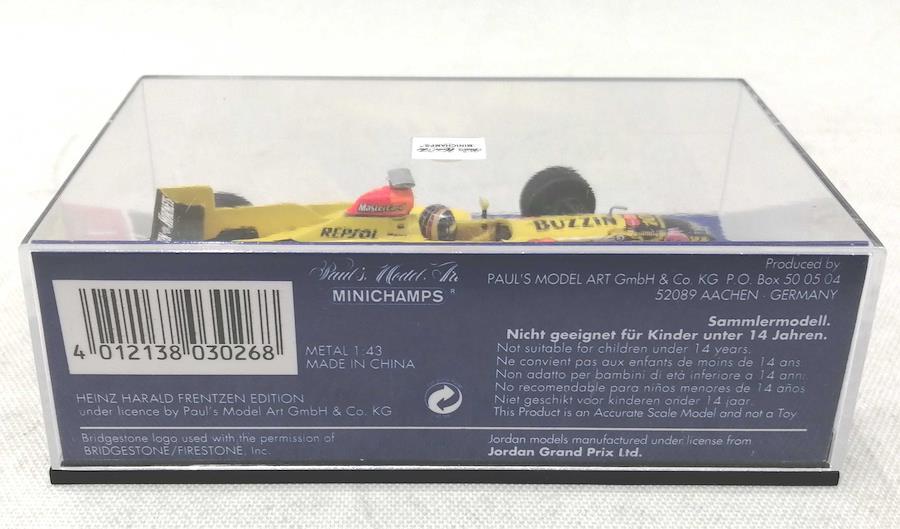 1/43 ミニカー JORDAN MUGEN HONDA TEST CAR SU ミニチャンプス 1/43スケール車 ミニチャンプスJORDAN MUGEN HONDA TEST CAR SU1/43 ミニカー■スケール・サイズ■特徴・備考タイヤに若干傷み