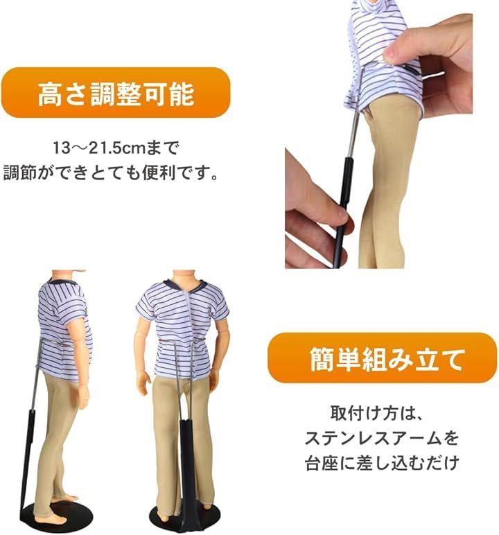 細いステンレスアームは、装着時も目立ちにくくなっておりドール展示に役立ちます。