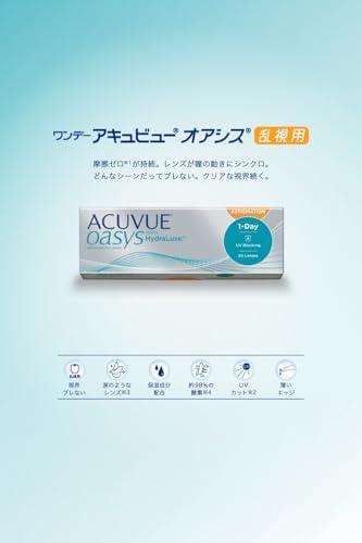 コンタクトレンズは高度管理医療機器です。必ず事前に眼科医にご相談の上、検査・処方を受けてお求めください。 ご使用前に必ず添付文書をよく読み、取り扱い方法を守り、正しく使用してください。 販売名:ワンデー アキュビュー オアシス / 承認番号:22800BZX00049000 / 登録商標 原産国:アイルランド共和国 / アメリカ合衆国 DIA(直径):14.3mm 、BC(ベースカーブ):8.5mm、PWR:-0.50 ~ -6.00(0.25ステップ)、円柱度数:-0.75、-1.25、-1.75、-2.25、円柱軸:90° 180°/ PWR:-6.50 ~ -9.00(0.50ステップ)、円柱度数:-0.75、-1.25、-1.75、円柱軸:90° 180°/ PWR:+0.25 ~ +4.00(0.25ステップ)、円柱度数:-0.75、-1.25、-1.75、円柱軸:90° 180° 1日使い捨てコンタクトレンズ / 1箱30枚入り / 片眼30日分/酸素透過率129DK/L / 含水率38% ワンデーアキュビューオアシスは、目にとって過酷な環境においても、1日の終わりまで乾燥感のない快適なつけ心地※と鮮明な見え方が得られ、疲れ知らずな目を追求したデジタル時代のハイパフォーマンス・コンタクトレンズ。独自のレンズ設計によりレンズがまるで涙の一部のように涙の層を安定。乾燥感や疲れ目の原因となる、コンタクトレンズの乾燥、かすみやぼやけ、まばたきの時のまぶたとレンズの摩擦を軽減します。 ※ 装用感、見え方には個人差があります。