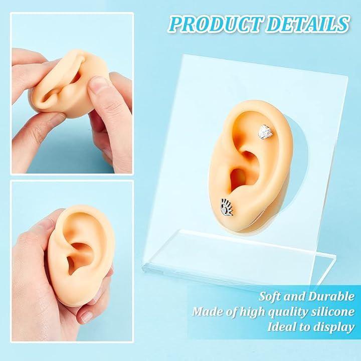OLYCRAFT 1セット シリコン模型 耳模型 耳モデル シリコンモデル リアル耳模型 ダミー 耳鍼 縫合練習用 絵画練習用 材料:シリコーン樹脂、アクリル樹脂 サイズ:約5.9x3.6x3.4cm。