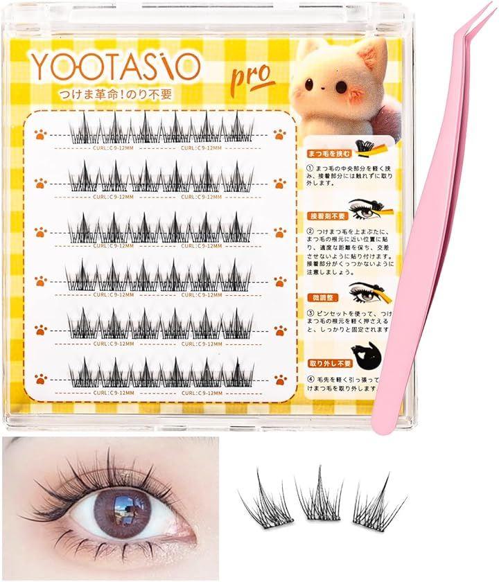 YOOTASIO すぐに使える グルーなしシリーズ 接着剤不要 落ちにくい --- 使用方法: (1) まつ毛の中央部分を軽く挟み、接着部分には触れずに取り外します。