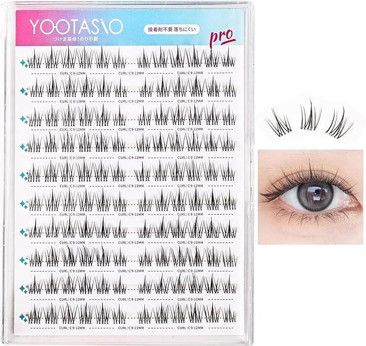 YOOTASIO すぐに使える グルーなしシリーズ 接着剤不要 落ちにくい --- 使用方法: (1) まつ毛の中央部分を軽く挟み、接着部分には触れずに取り外します。