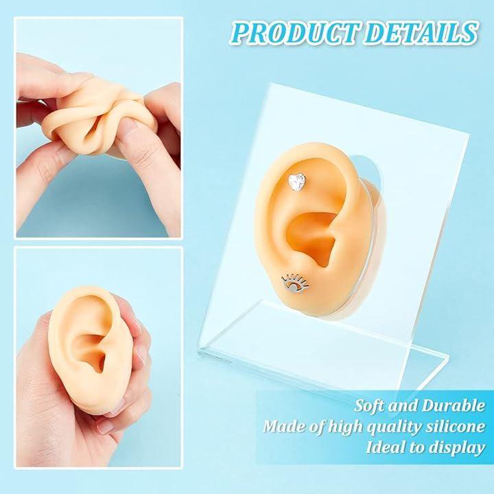 OLYCRAFT 1セット シリコン模型 耳模型 耳モデル シリコンモデル リアル耳模型 ダミー 耳鍼 縫合練習用 絵画練習用 材料:シリコーン樹脂、アクリル樹脂 サイズ:約5.9x3.6x3.4cm。