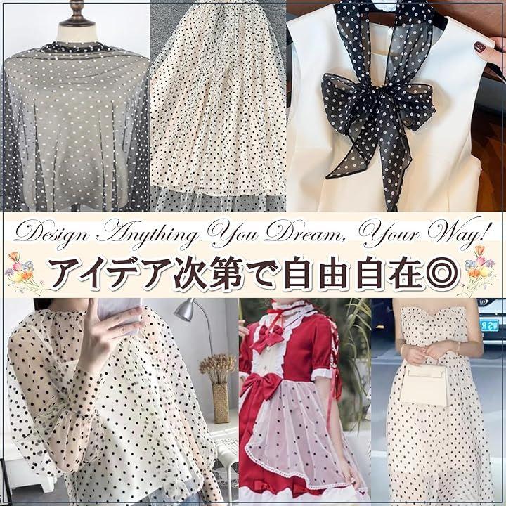 「カラー」ブラウン、ネイビー、ブラック1、ホワイト1、ホワイト2、レッド「生地」ナイロン「柄」水玉「幅」160cm「長さ」約3m「ドットのサイズ」約0.8cm「フロッキー」繊維の表面に毛羽立ちを加える特殊な仕上げ加工技術を指します。
