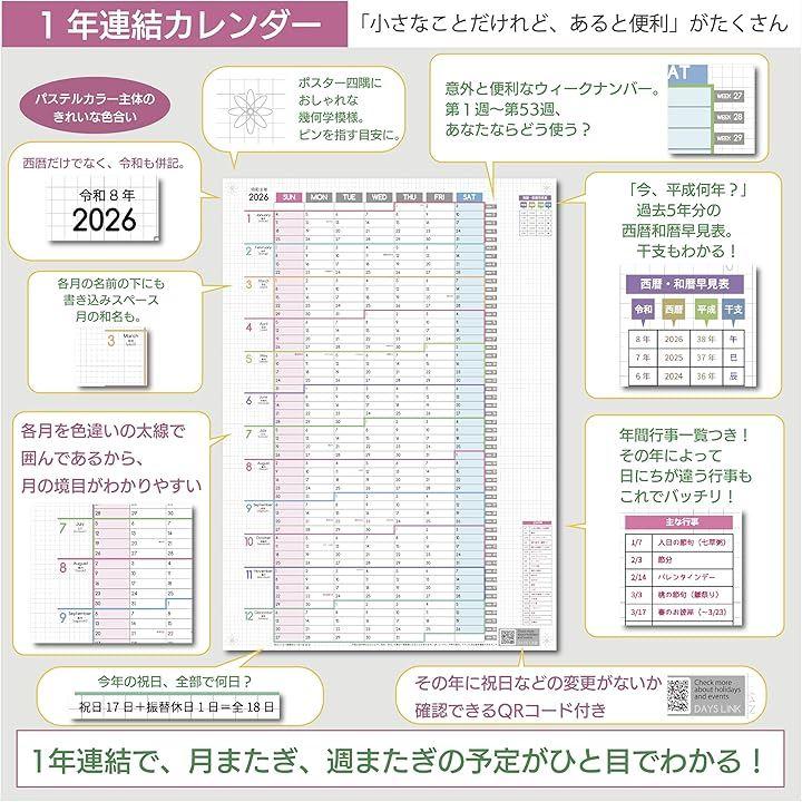 シンプルだけど、あると便利な機能をたくさん集めた年間カレンダー。