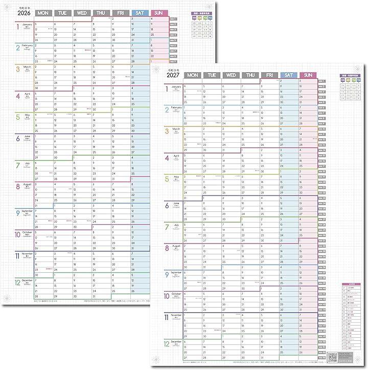 各月の境目は色違いの太線で区切ってあるのでわかりやすい。