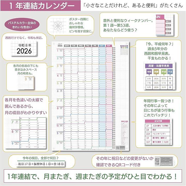 シンプルだけど、あると便利な機能をたくさん集めた年間カレンダー。