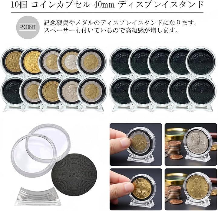 セットで便利、10個入りでお得なコイン収納用品。 この商品は、コインカプセル(クッション付き)とディスプレイスタンドがそれぞれ10個ずつセットになっています。
