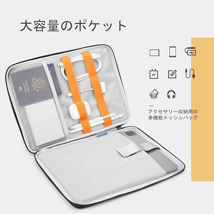 「タブレットとアクセサリーを整理する」タブレットのコンパートメントに加えて、このタブレットバッグには異なる弾性固定ストラップを備えた1つの仕切りがあります。