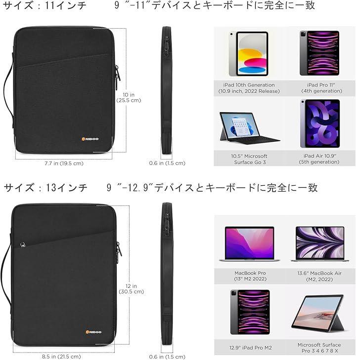 「寸法と普遍的な互換性」外寸:10インチ x 7.7インチ x 0.6インチ / 25.5 x 19.5 x 1.5 cm、内寸:9.5インチ x 7.5インチ x 0.5インチ / 25 x 19 x 1.2 cm;10.2インチiPad 7 8 9; 10.9インチiPad 10;10.5インチ 11インチiPad Pro M2 M1;10.9インチiPad Air M1、10インチSurface Go 2 3、10インチTab 3 10 Plus、10インチTab 4 10 Plus、10インチIdeapad D330、10.4インチGalaxy Tab S6 Lite、10.5インチGalaxy Tab S5e S6 Tab Active Pro、10インチMediaPad M3 lite 10と互換性があります。