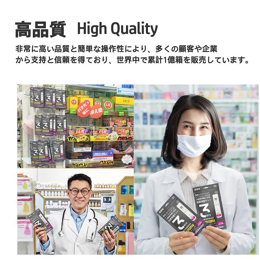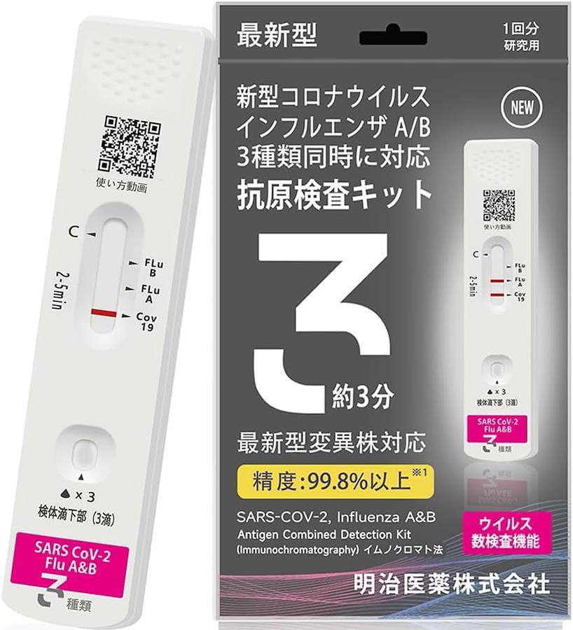 新型コロナウイルス(SARS-CoV-2)は、ウイルス学的には、ニドウイルス目・コロナウイルス亜科のコロナウイルス科に分類されます。ウイルスはヒトの粘膜に付着し、そこから体内に入り込んで 増殖することで発熱やせきなどの症状を引き起こします。インフルエンザウイルスは、A型、B型、C型に大きく分類されます。本検査キットはコロナウイルスとA/B型インフ ルエンザ検出が可能です。 新型コロナウイルスとインフルエンザA/B型 三種同時に検査できる。 高い信頼性により、ヨーロッパでの総販売数がなんと一億個を突破しました。日本でも民間企業やドラッグストアなどで次々と私共の商品を販売しています。 本件キットは、疫学調査等のための試験研究を目的とするものであり、疾病等の診断を行うことを目的とするものではないため、新型コロナウイルス感染症の罹患の有無を調べる目的で使用すべき商品ではありません。 発熱等の症状がある方で、新型コロナウイルス感染症の罹患が疑われる場合には、受診相談センター又は医療機関にご相談ください。 発熱等の症状が無い方が、新型コロナウイルス感染症に関する検査の受検を希望する場合には、自己負担で受ける検査(自費検査)を提供する医療機関を受診するか、提携医療機関を有する自費検査を提供する機関において新型コロナウイルス感染症に関する検査を受検してください。