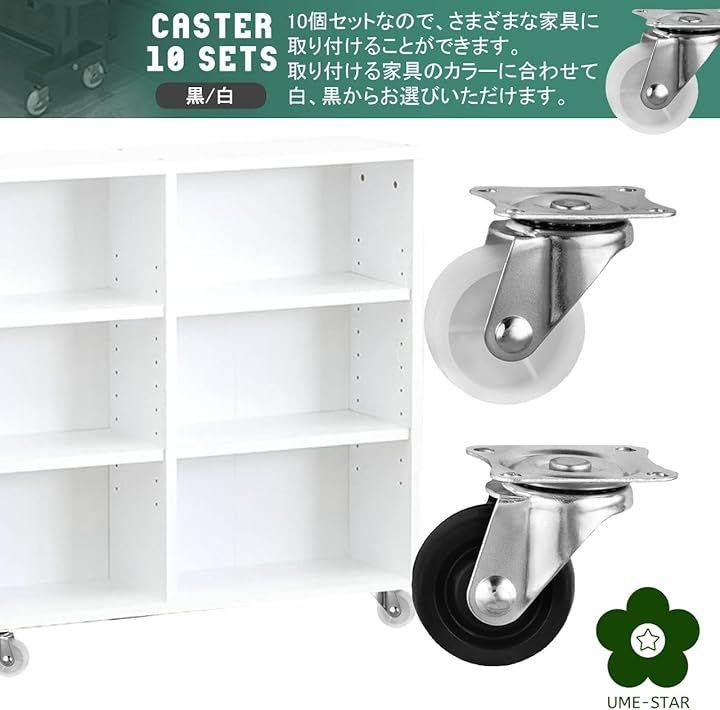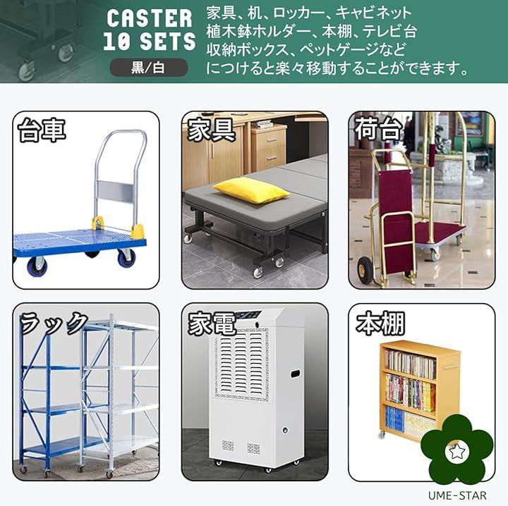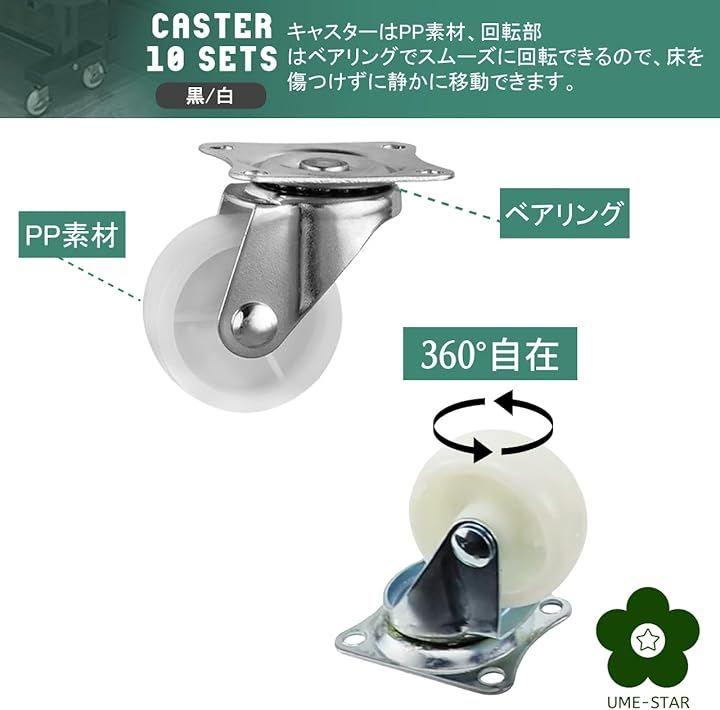 360度自在に回転できるプレート式キャスター10個セットです。