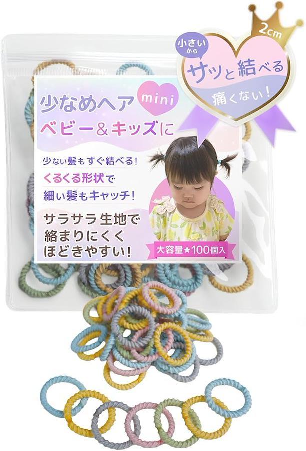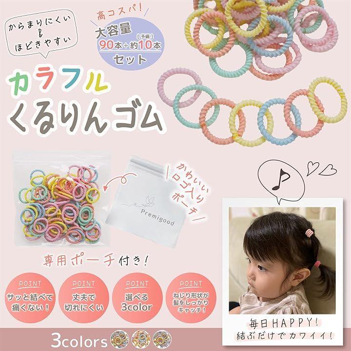 「結びやすい子供用ヘアゴム」Premigoodのカラフルくるりんゴムは、子供の細い髪でもしっかりキャッチし、からまないヘアゴム。