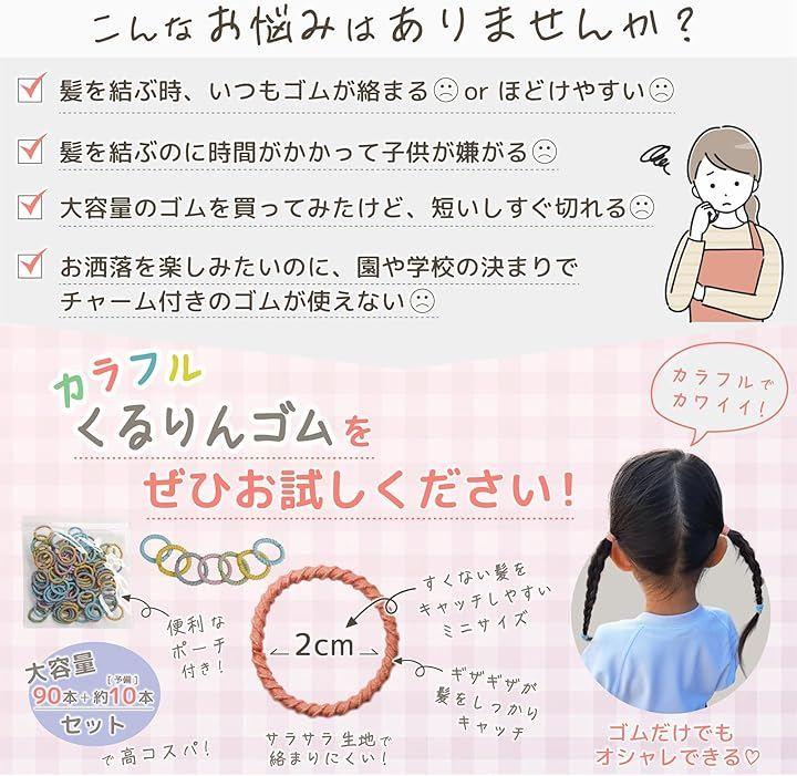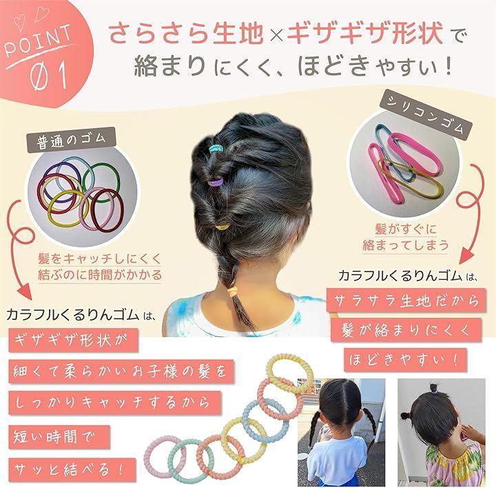 「結びやすい子供用ヘアゴム」Premigoodのカラフルくるりんゴムは、子供の細い髪でもしっかりキャッチし、からまないヘアゴム。