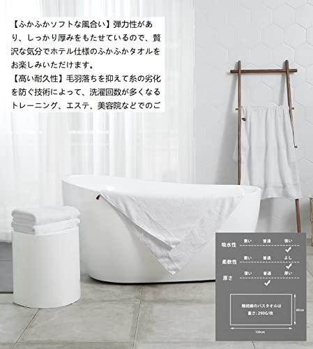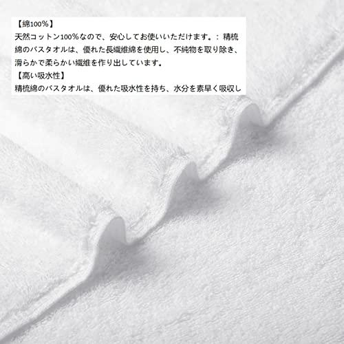 【高品質の綿バスタオル 4枚セット】サイズ:約60×120cm、重量:約290g ,このバスタオルは、綿糸の中でも最高級の「コーマ綿」繊維を使用しており、長繊維を丁寧に加工することで、柔らかくしっとりとした肌触りを実現しました。掉毛が少なく、長期的な使用にも耐えられます。洗濯しても毛羽立ちが少なく、清潔感を保ちやすく、長くお使いいただけます。 【高い吸水性】:精梳綿のバスタオルは、優れた吸水性を持ち、水分を素早く吸収し、お風呂やシャワー後に快適なドライな肌触りを実現します。お風呂から上がったときに、しっかりと水分を吸収してくれます。また、水泳後や運動後など、汗をかいたときにも、速乾性が高いため、すぐに乾かすことができます。 【耐久性】:精梳綿のバスタオルは、高品質の長繊維綿で作られており、強度が高く、耐久性があり、繰り返し洗濯しても形が崩れにくいです。低起毛性:バスタオルの綿繊維は、強度が高く、しなやかで、起毛しにくく、長持ちします。 【ふかふかソフトな風合い】純綿のバスタオルは、使い心地もとても良いです。綿繊維が柔らかいため、肌に触れるときの感触が非常に心地よく、リラックスした気分になることができます。また、吸水性が高いため、身体を素早く乾かすことができます。 【多様なカラーバリエーション】純綿浴巾は、多様なカラーバリエーションがあります。自分好みのカラーを選ぶことができるため、おしゃれなバスタイムを楽しむことができます。また、ギフトとしても人気があります。