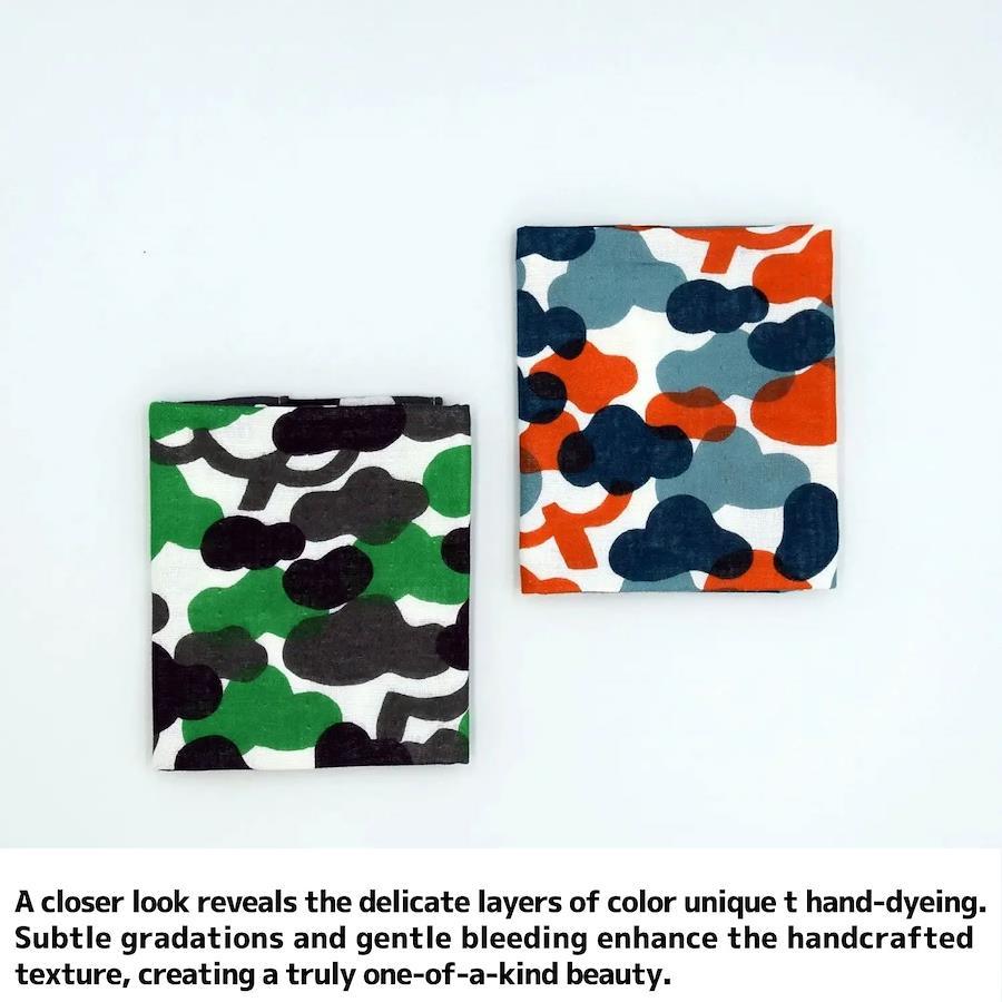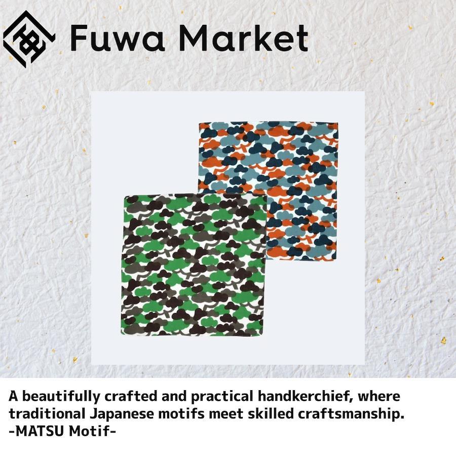 手染めの魅力が際立つ職人技このハンカチはFuwa Marketのオリジナル生地で、京都の染色工場で職人が一つひとつ手作業で仕上げた特別な逸品。