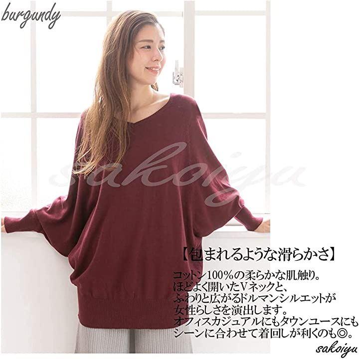 ・コットン100%の柔らかな肌触りで着心地・程よく開いたVネックと、ふわりと広がるドルマン・シルエットが、リラックス感がありながらもフェミニンな女性らしく、春ニットとしても活躍します。