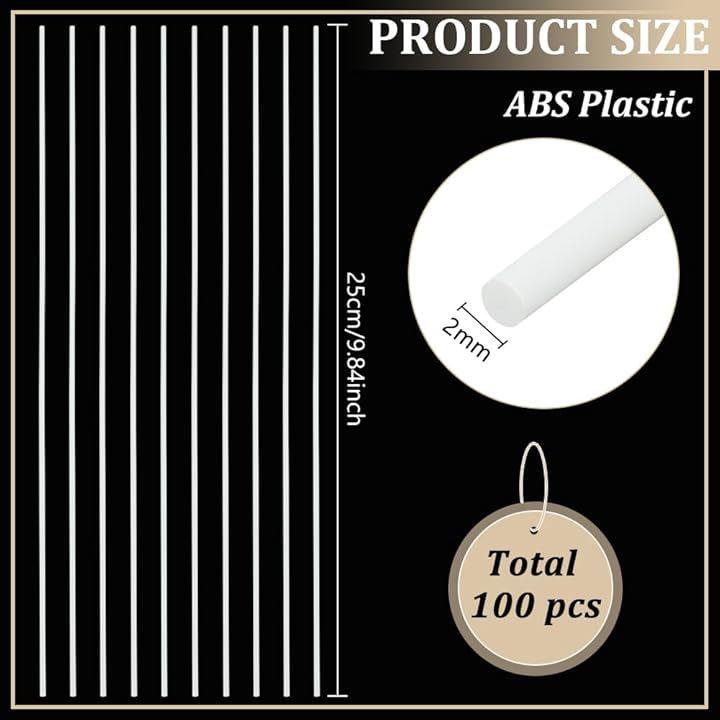 十分な数量:直径2mm、長さ250mm/9.84インチの丸型ABSプラスチックロッド100本をお届けします。