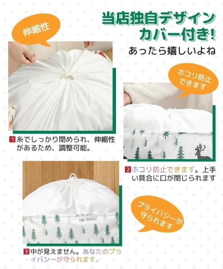 画像のように布団類の収納にも使えるサイズ感で、季節物の一時収納にも便利です。