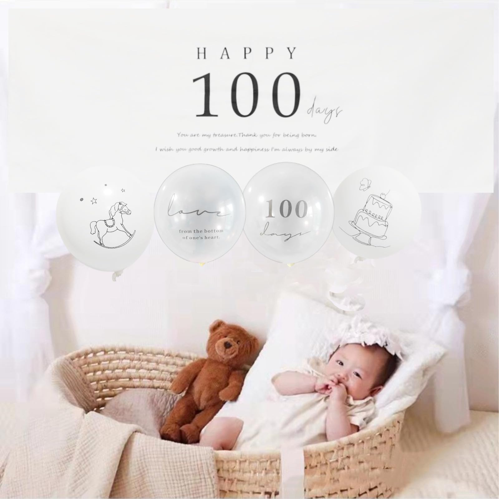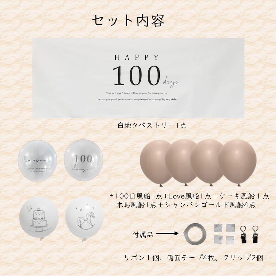 【タペストリー英文】You are my treasure.Thank you for being born. I wish you good growth and happiness I'm always by my side→あなたは私の宝物です、生まれてきてくれてありがとう。 あなたの成長と幸せを祈っています、いつもそばにいます?【Loveバルーン英文】love from the bottom of one's heart→心の底から愛してる【セット内容物】白地タペストリー1点+100日風船1点+Love風船1点+ケーキ風船1点+木馬風船1点+色風船4点。※付属品に押しピンありますので開封時針にご注意お願い致します。【製品サイズ】タペストリー横100cm×縦40cm ※タペストリーはインク飛びや多少のインクの滲みが発生する場合があります。折り畳んで発送します。アイロン可です。【飾りつけ】高級生地材質タペストリーに、風船で色味をプラスして、100日記念日演出を出来ます。お子様の100日お誕生日に、白のモノトーン色調でお誕生日の飾りとしては最適です。一生に一度の大切な100日目のお誕生日におすすめです。自宅でも100日お誕生日感を演出した写真撮影ができます。【免責事項】メーカーによる商品リニューアルに伴いパッケージ(内容量も含む)変更が行われた場合、新パッケージでお届け致します事ご了承願います。