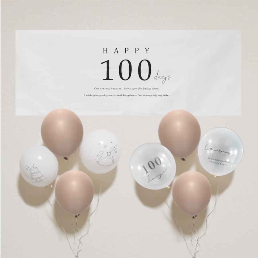 通常1-5営業日で発送【新品未開封品】【セット内容物】:白地タペストリー1点+100日風船1点+Love風船1点+ケーキ風船1点+木馬風船1点+色風船4点、合計9点の誕生100日飾り付けセット 【製品サイズ】:タペストリー横100cm×縦40cm:風船25cm(膨らませた状態) 【用途】:高級生地材質で100日記念日を演出を!白のモノトーン色調でお誕生日の飾りとしては最適です。一生に一度の大切な100日目のお誕生日におすすめです。
