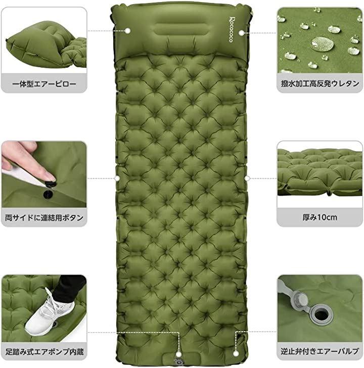 ・v「高い耐久性、エコ素材、汚れにくい」Rocacocoのエアーマットは高品質で破損しにくい400ナイロンと多層構造のTPU素材を採用しております。