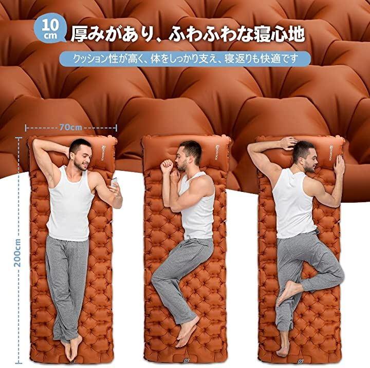 ・v「厚手・軽量・コンパクト」エアークッション厚み約10cm(エアー満タン時)、人間工学の設計によって体圧を均等に分散し、寝心地よく体をバランスよく支えてくれます。