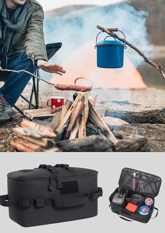 キャンプやバーベキューに必要な調理器具をすべて収納でき、さまざまなサイズのボトルをきれいに収納できます。
